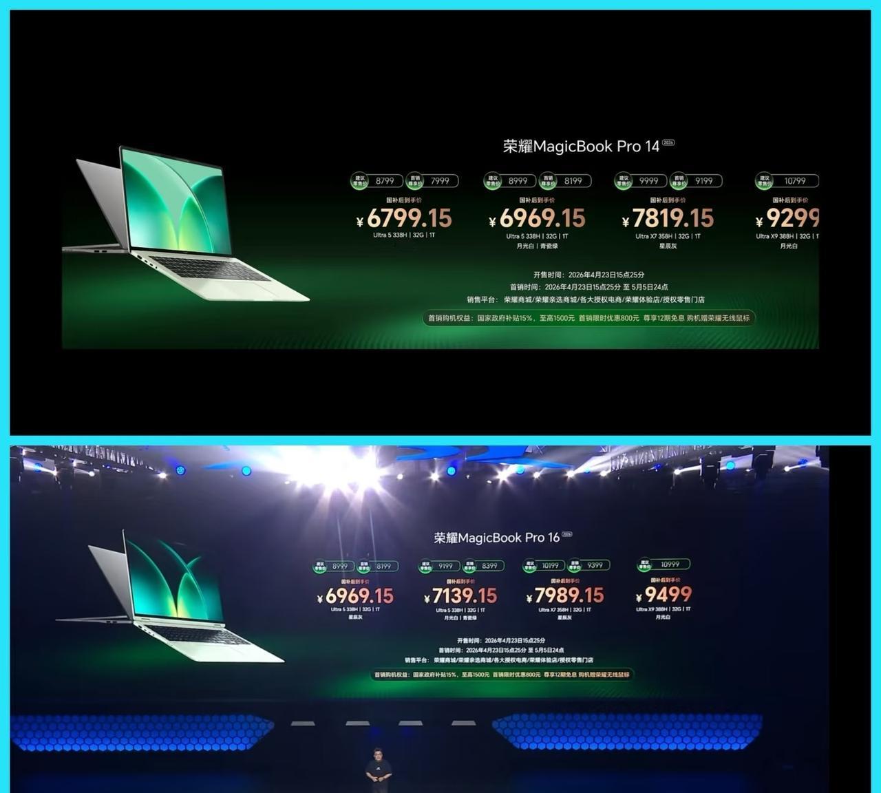 荣耀WIN发布会1小时出了13款新品,价格整理好了。游戏本H9国补后9999起,H7不到8千;MagicBook Pro14/16国补价六千多起,X系列笔记本五千左右。还有平板、耳机、充电器这些,国补后性价比挺高,想换设备的可以看看。