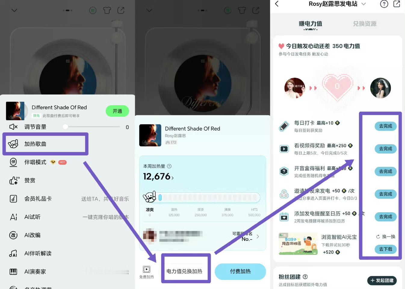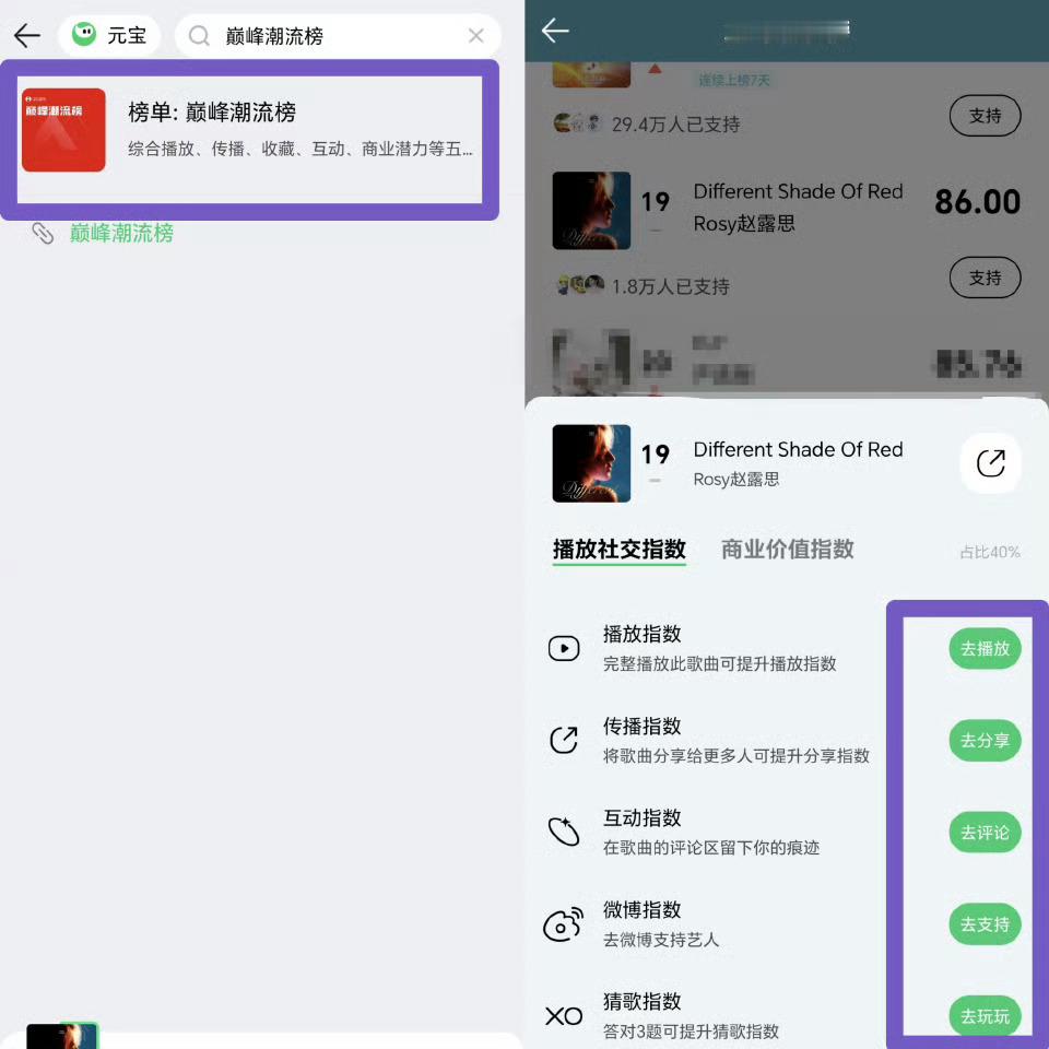 QQ音乐团建搜索 《I Hope You Find God》,循环🔁1️⃣播放界面点击“:”-赞赏2️⃣播放界面点击“:”-加热歌曲-电力值兑换加热3️⃣搜索“巅峰潮流榜”,找到歌曲,做完所有任务