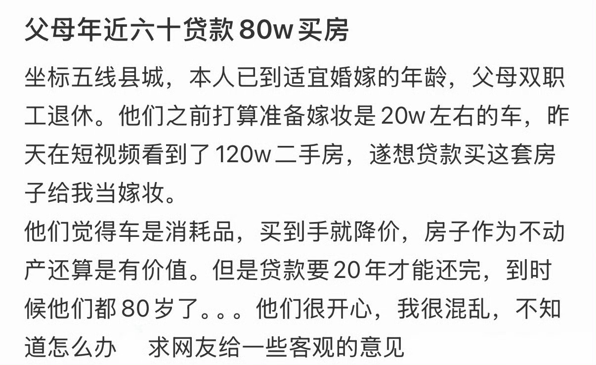 父母年近六十贷款80w买房