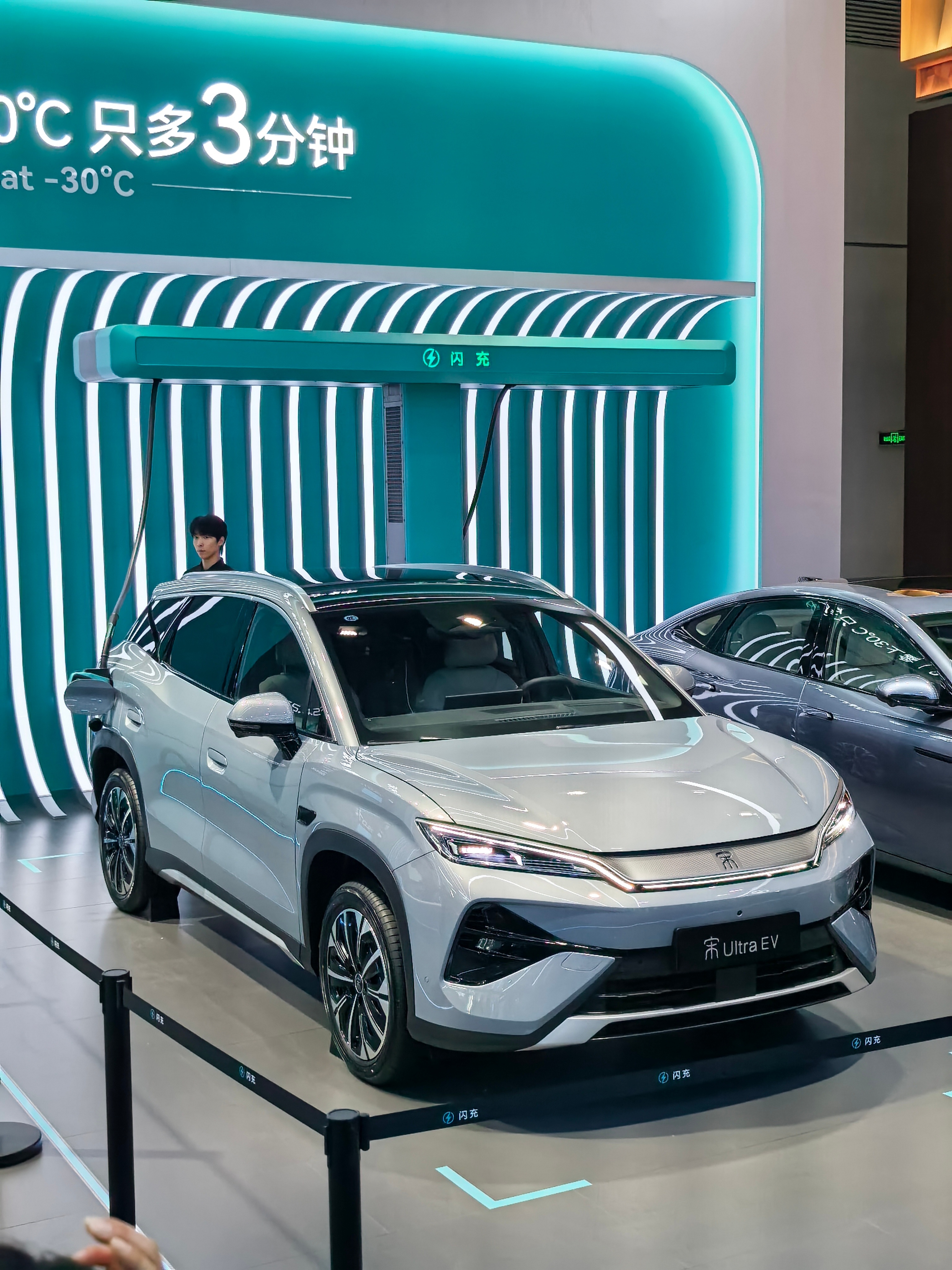比亚迪的闪充真挺牛众目睽睽下给大家实时展示充电过程老外们都看呆了北京车展 北京·