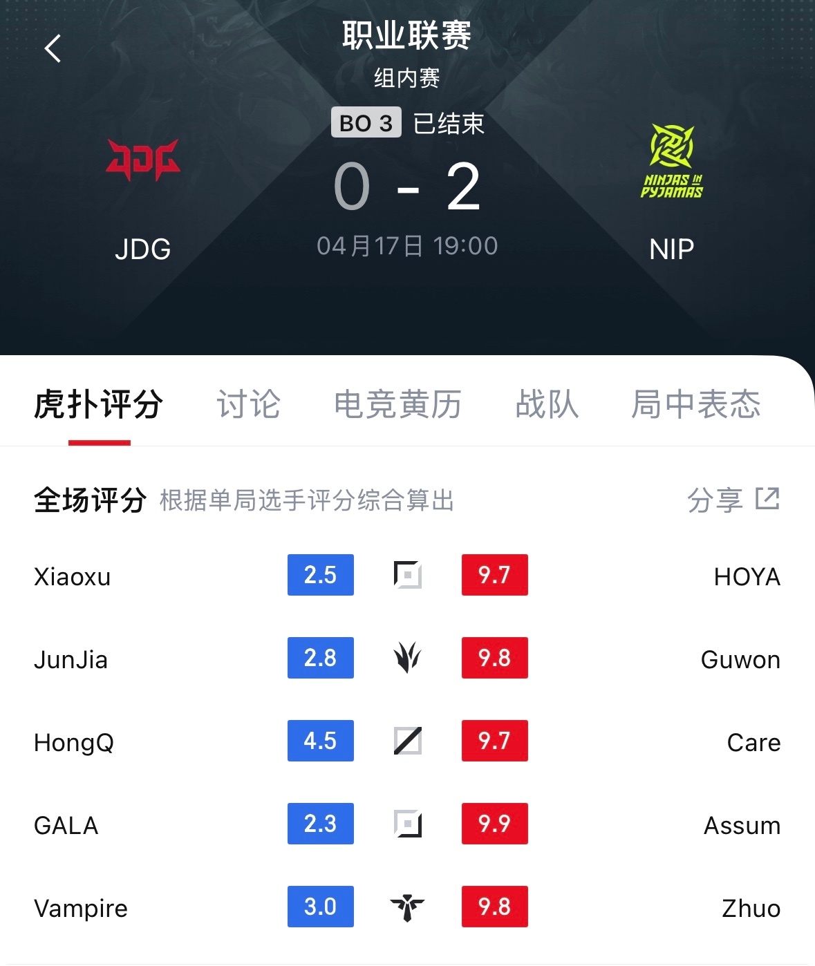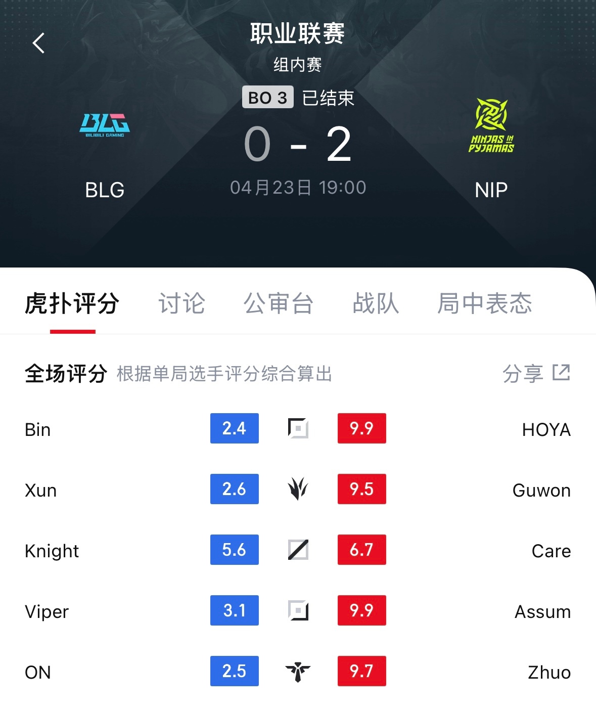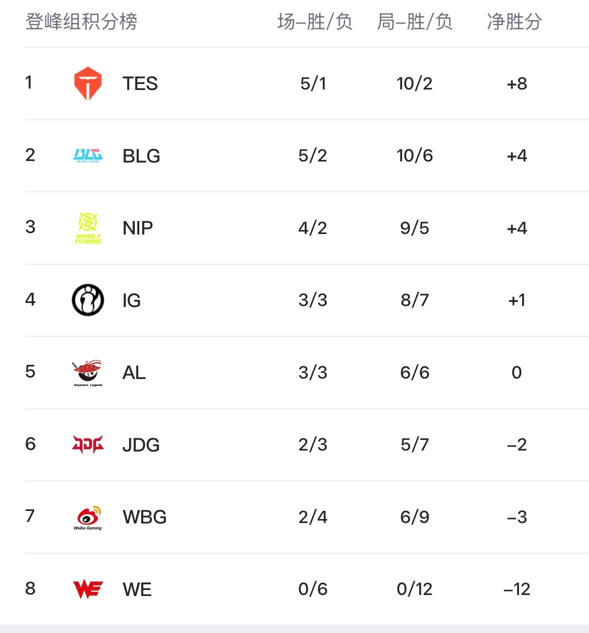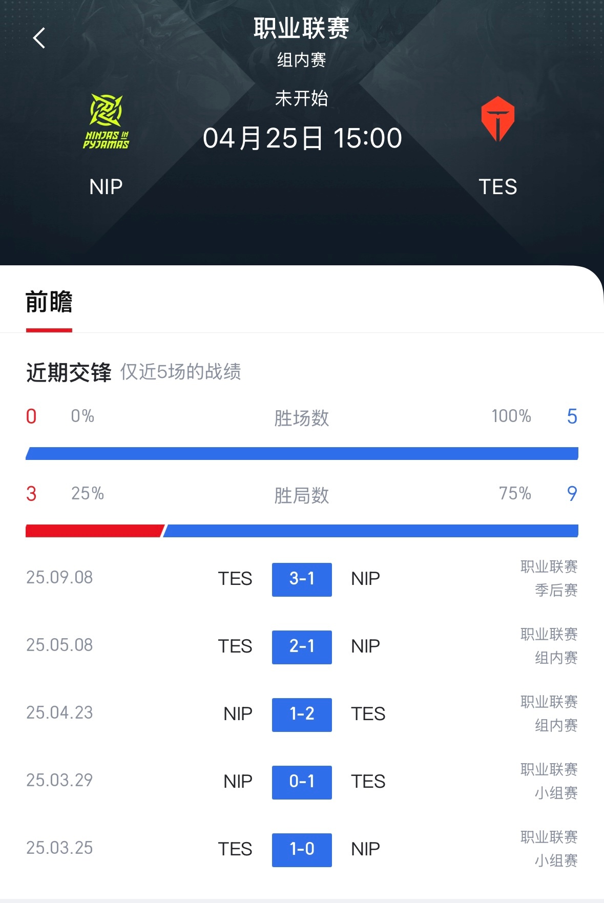 有意思的是明天TES将要对阵昨天爆冷零封BLG的NIP,吐槽顺便看了一下NIP最近赢的都是强队,2-0JDG 2-0AL 2-0BLG,期待一下明天TES是继续领跑登峰组还是翻车 NIP专挑强队打