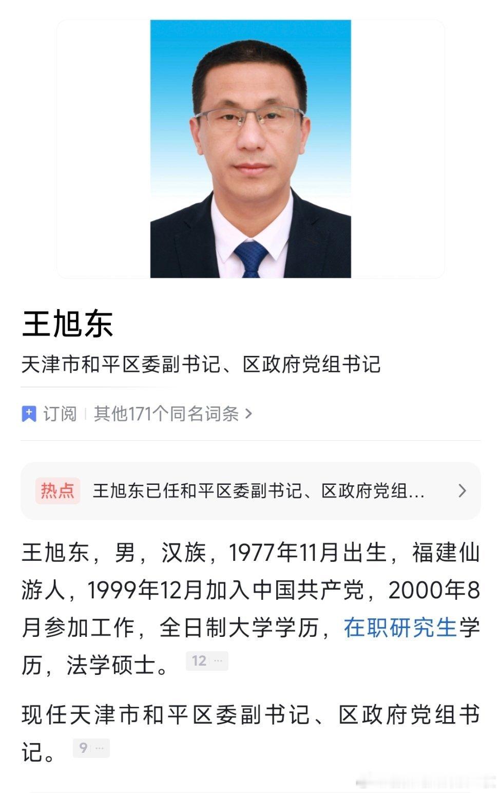 王旭东已任和平区委副书记、区政府党组书记。