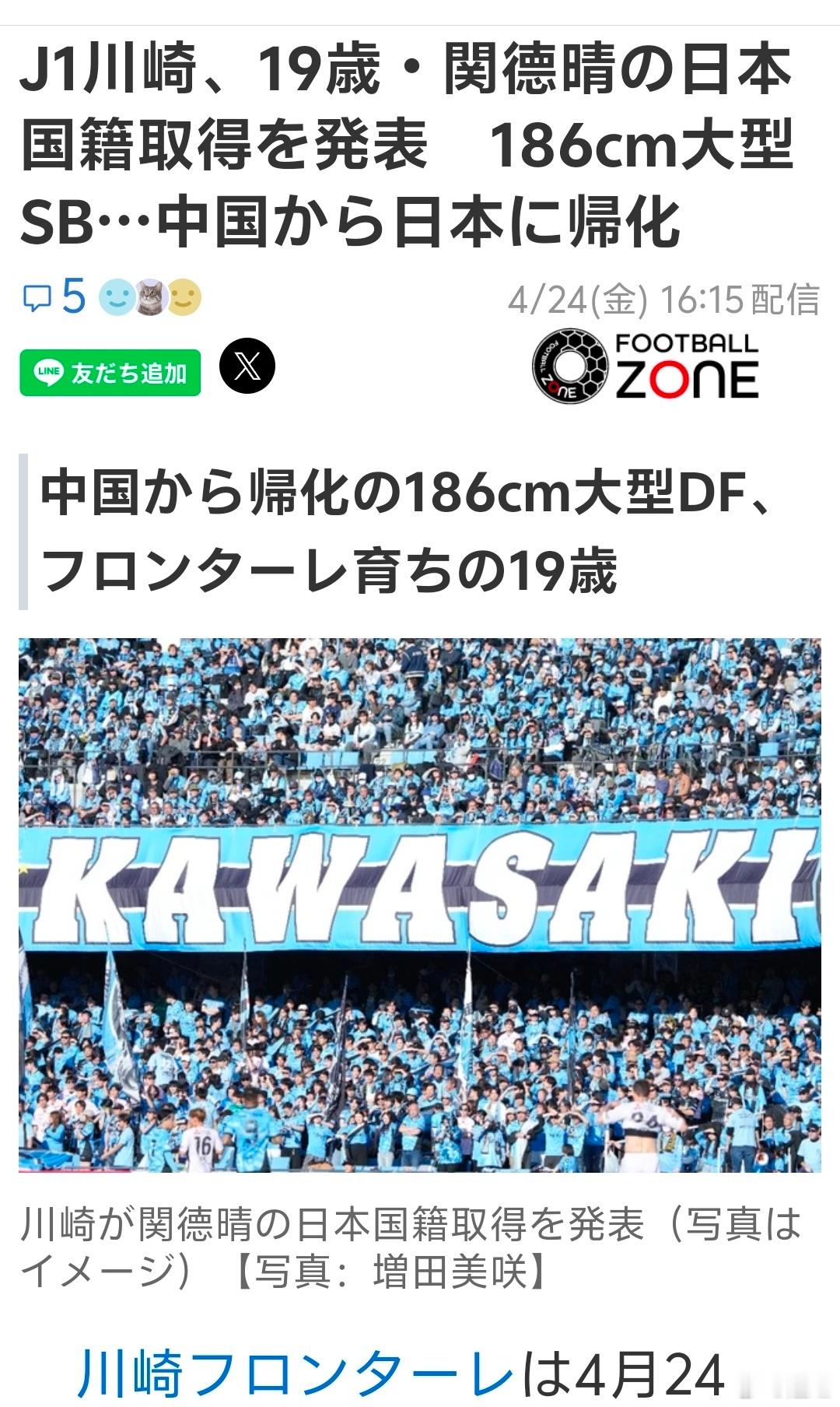 关在去年8月决定从川崎u-18升入一线队。日本媒体认为,他的未来将受到极大的关注。