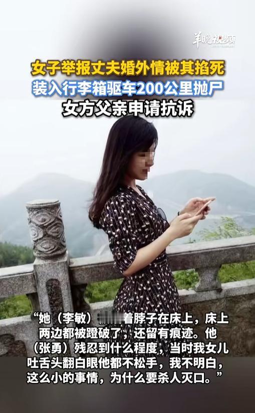 信息来源:《女子举报丈夫婚外情被其掐死,装入行李箱驱车200公里抛尸,女方父亲申请抗诉