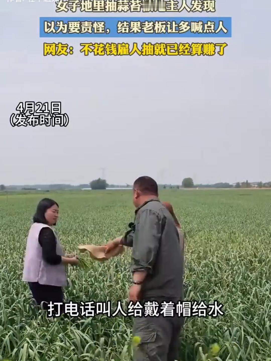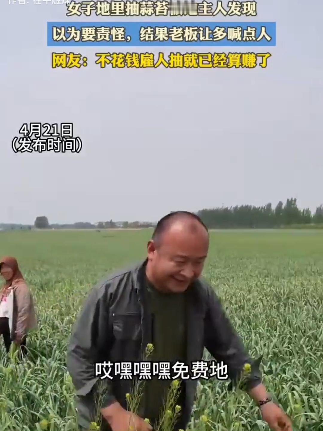 赚大了!两女子在地里抽蒜薹,一个大哥骑着三轮车,停在距离她们最近的地边,两人看到大哥停车,便站在原地一动不动,直到大哥说句:“恁俩弄啥嘞?”才知道原来两这块地是大哥家的,其中一女子战战兢兢地回复:“抽抽蒜薹嘞!”本以为接下来大哥会惩罚她们,谁料大哥的举止让人出乎意料。网友:不花钱雇人抽蒜薹,这买卖赚大了!