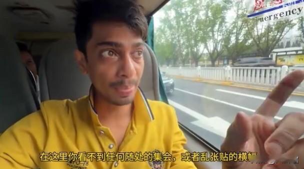 印度小哥在网约车上滔滔不绝的讲述了在中国这5天的生活,他们表示在中国看不到任何的集会,也看不到到处张贴的广告横幅,一切都有条不紊。
