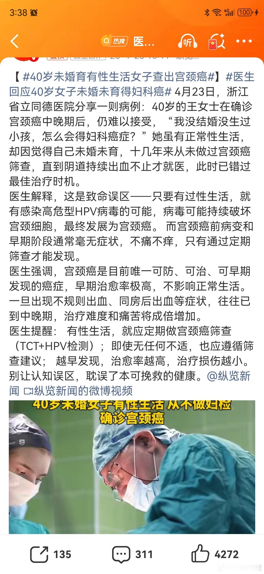 医生回应40岁女子未婚未育得妇科癌宫颈癌是目前唯一一个可以通过疫苗预防的癌症,也