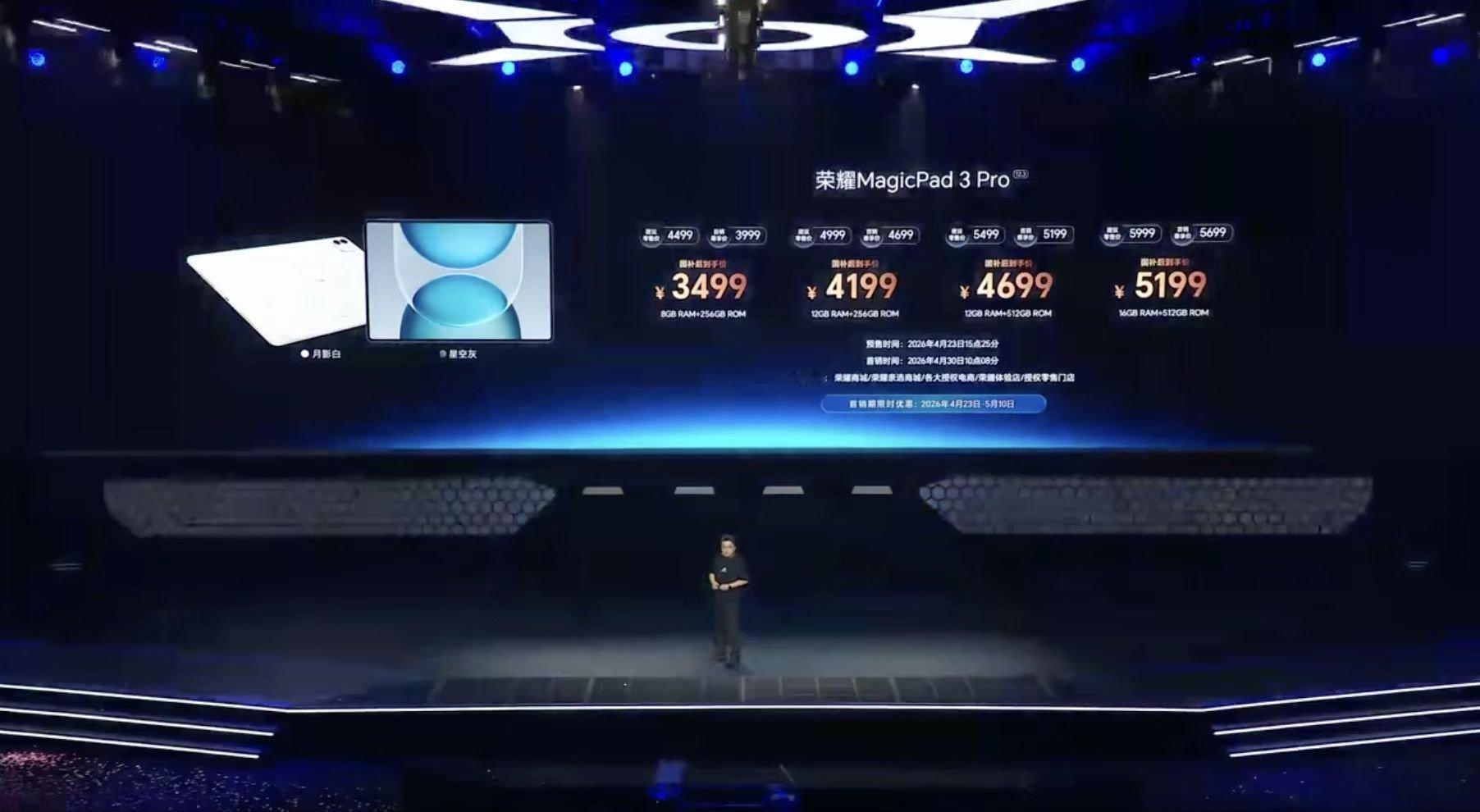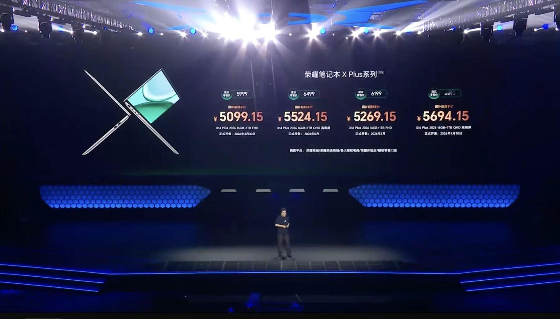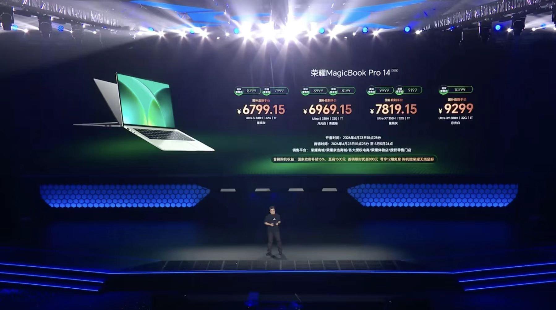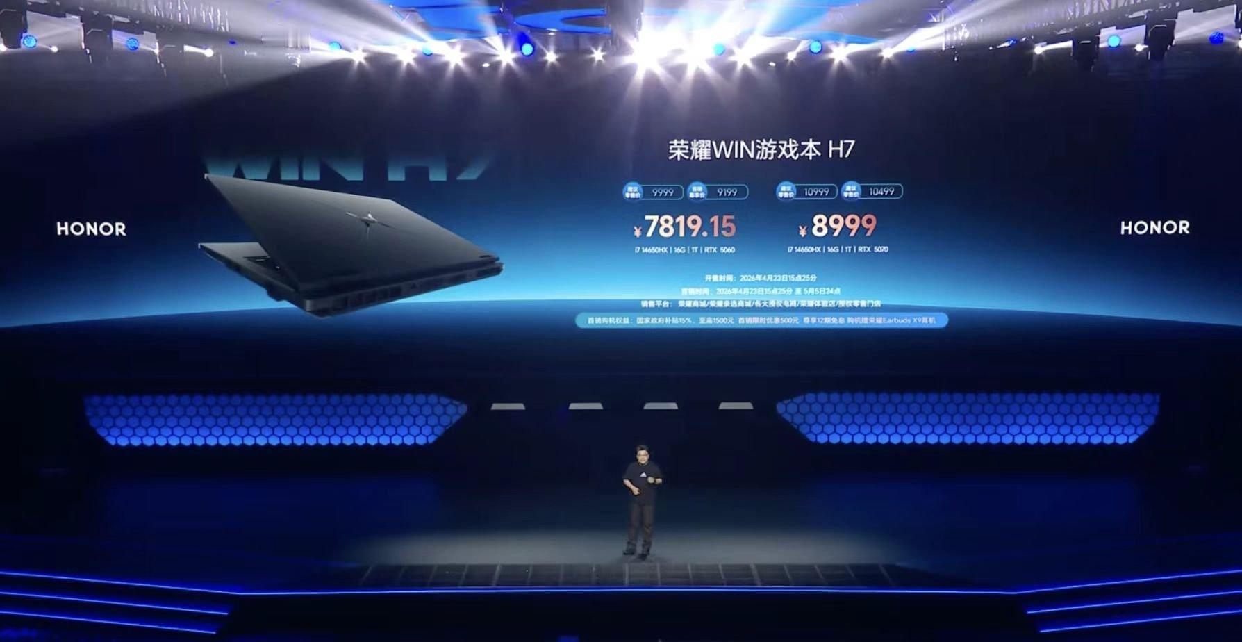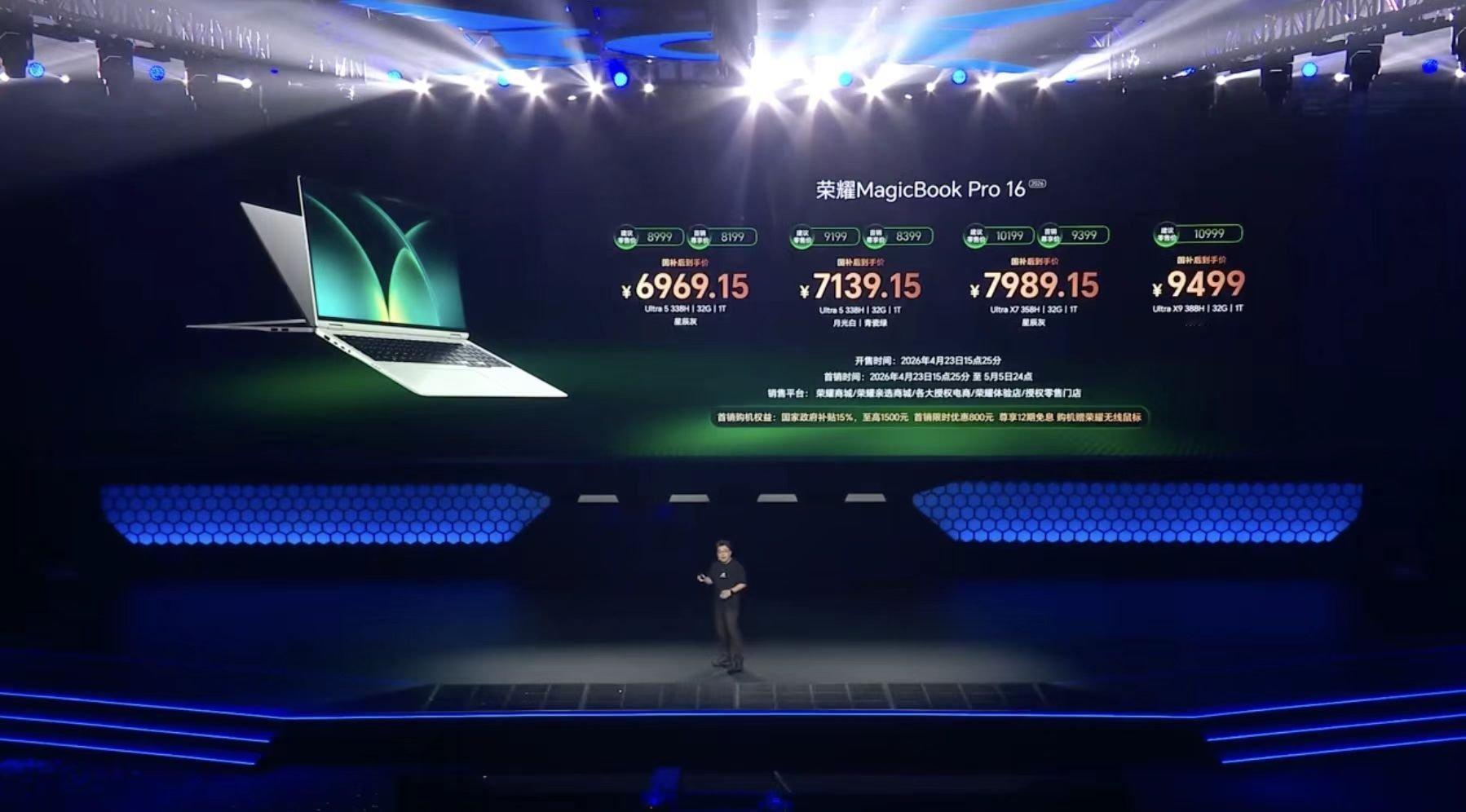 荣耀WIN游戏本H9是11999起;荣耀WIN游戏本H7是9999起;荣耀MagicBook Pro 14是8799起;荣耀MagicBook Pro 16是8999起;荣耀笔记本XPlus系列是5999起;荣耀MagicPad 3 Pro是4499起;