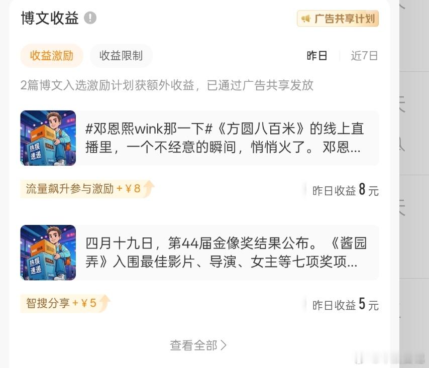 点开收益页,人都懵了。两个账号保8成功✌🏻但郁闷的是两个账号《酱园弄》评论都攒了五十多条,数据也不是太难看。结果却只给了五元。看着屏幕好一会儿。心里只剩一句,大眼的钱,是真的难赚。熬着夜追热点写的文案,一字一句磨出来的内容最后就换了这么点收益。说不心塞是假的。