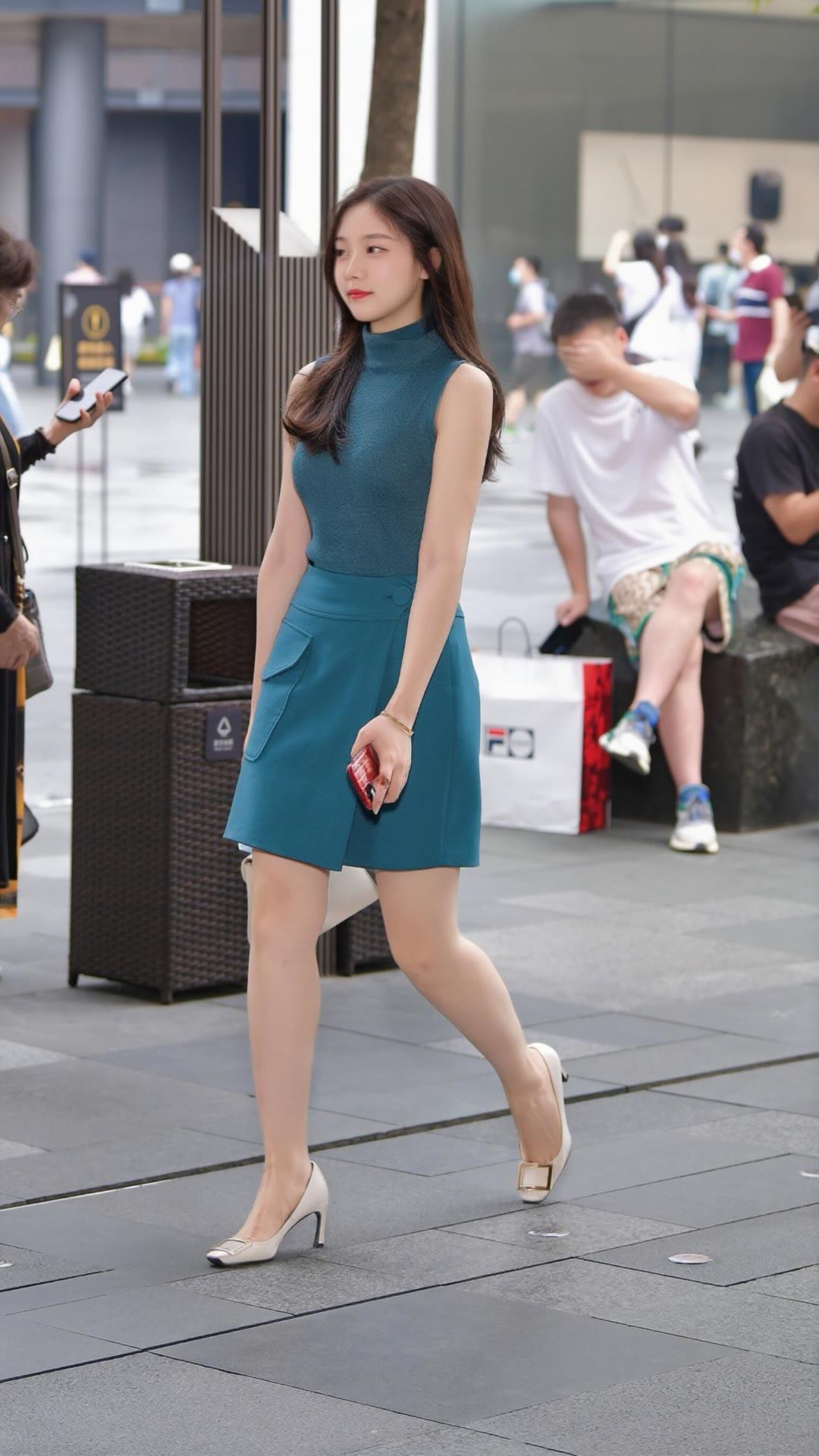 她就是小个子的教科书模板,穿搭超好看!每套都精准拿捏比例,短款上衣、高腰半裙和利