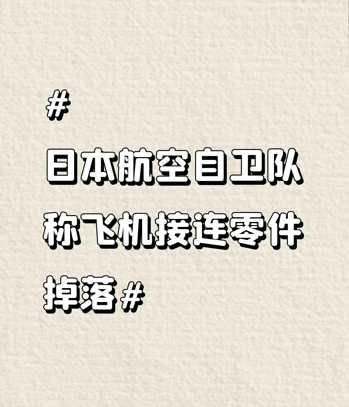 日本航空自卫队称飞机接连零件掉落 日本航空自卫队最近可真是“状况百出”!多个基地接连通报飞机零件掉落事件。像北海道千岁基地,一架F - 15战机21日训练时掉了个直径约5.4厘米、高约3.8厘米的圆柱形零件,16日另一架F - 15战机机翼零件也掉了。静冈县滨松基地在半年内训练机有2起零件掉落,福冈县筑城基地去年10月以来发生3起。而且好多零件至今下落不明。这可把日本民众吓坏了,在社交媒体上纷纷表达不满,毕竟哪怕小零件掉落都可能引发大祸。日本航空自卫队得好好查查原因,别让这种危险情况再继续下去了。