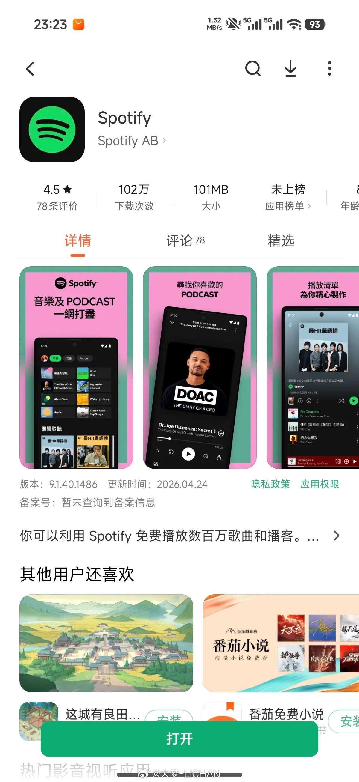 看了一下是真的,小米应用商城上了一下谷歌应用,Spotify也可以直接下载升级了