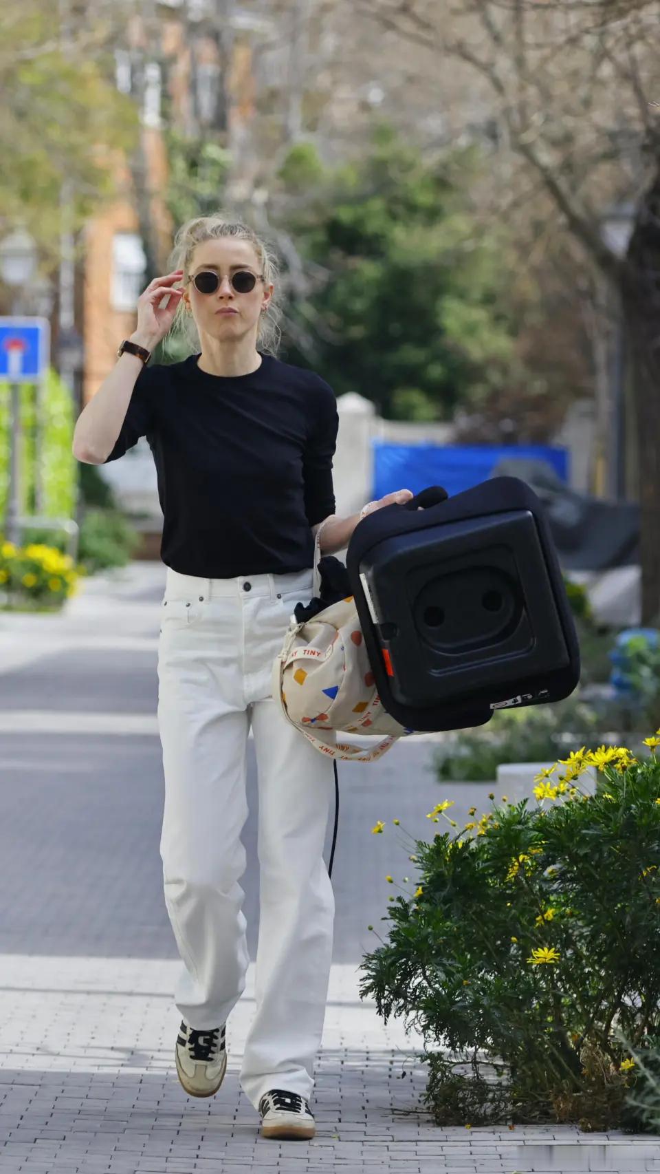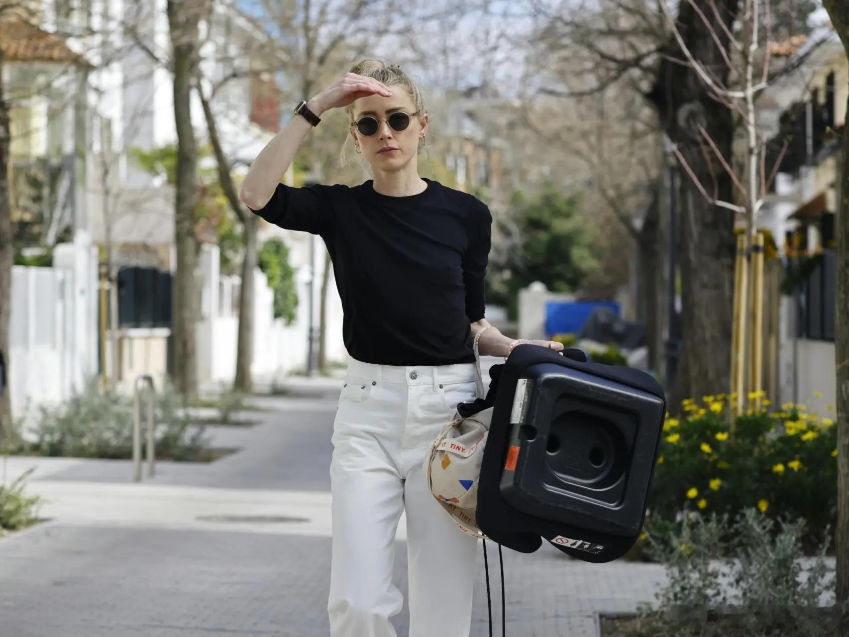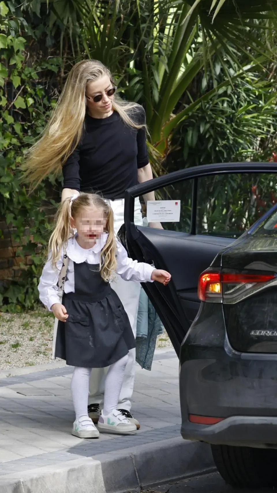 amber heard艾梅伯希尔德在西班牙马德里外出,接大闺女Oonagh放学后