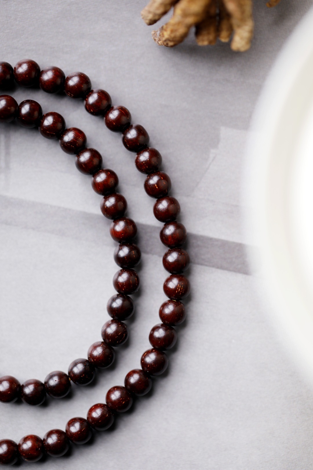 小叶紫檀原创【天韵】5mm 60颗 锁骨链包浆光泽柔和靓丽,似如黑珍珠,珍宝相配