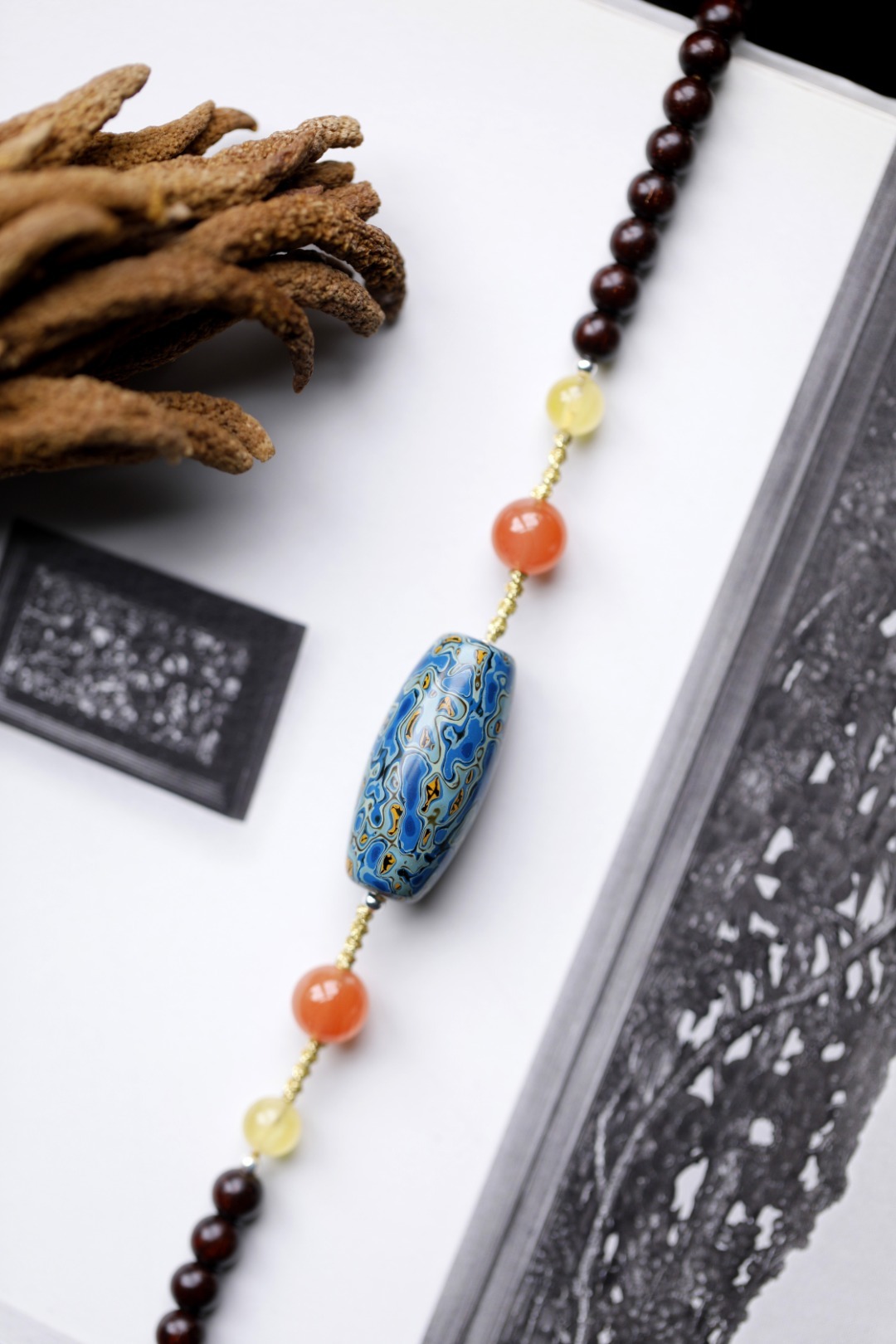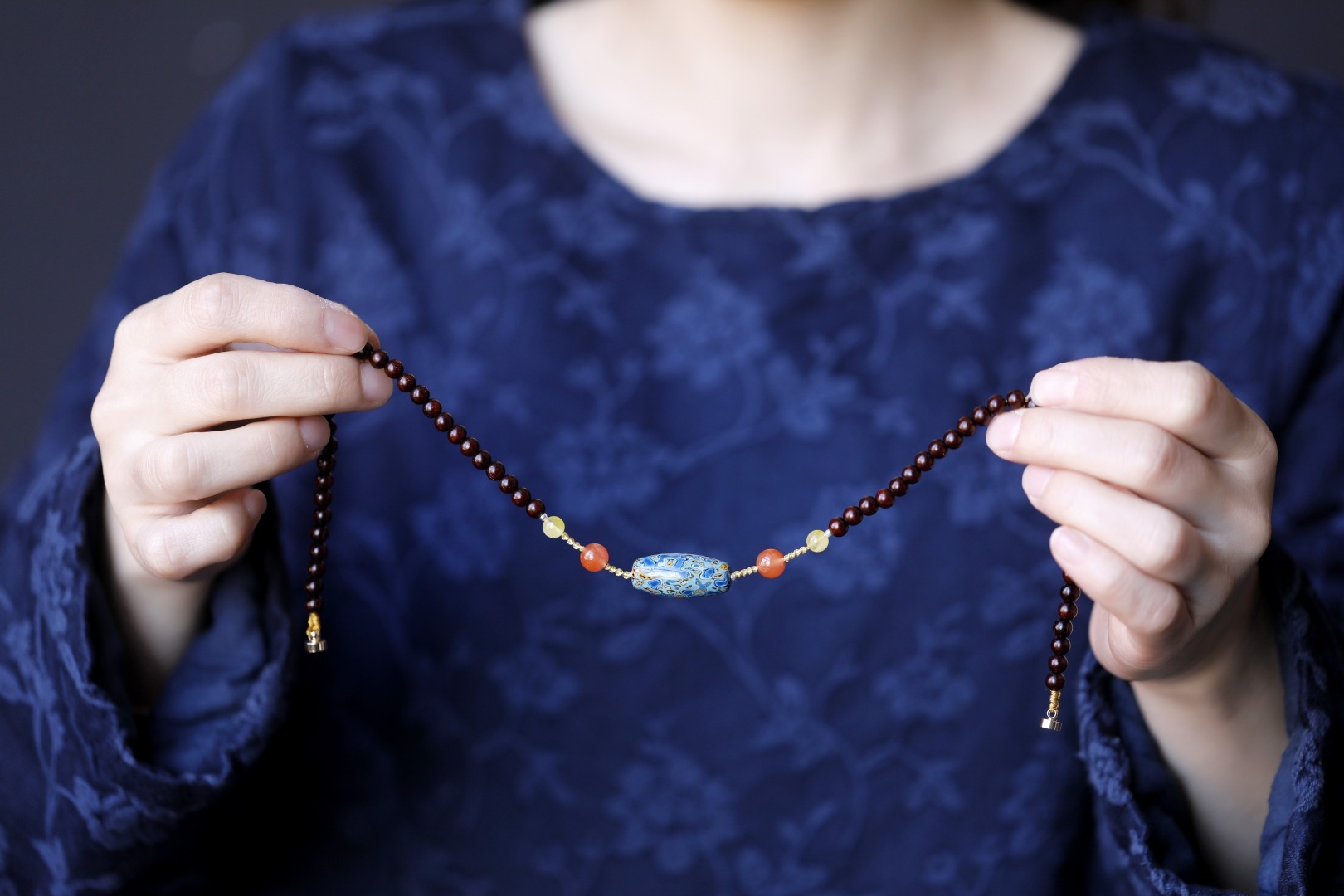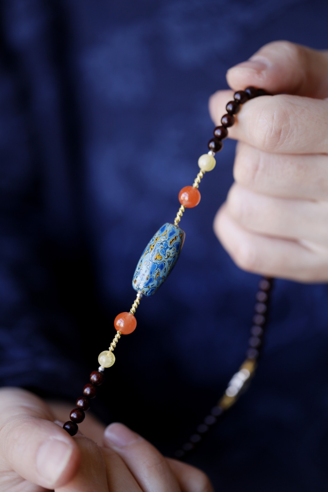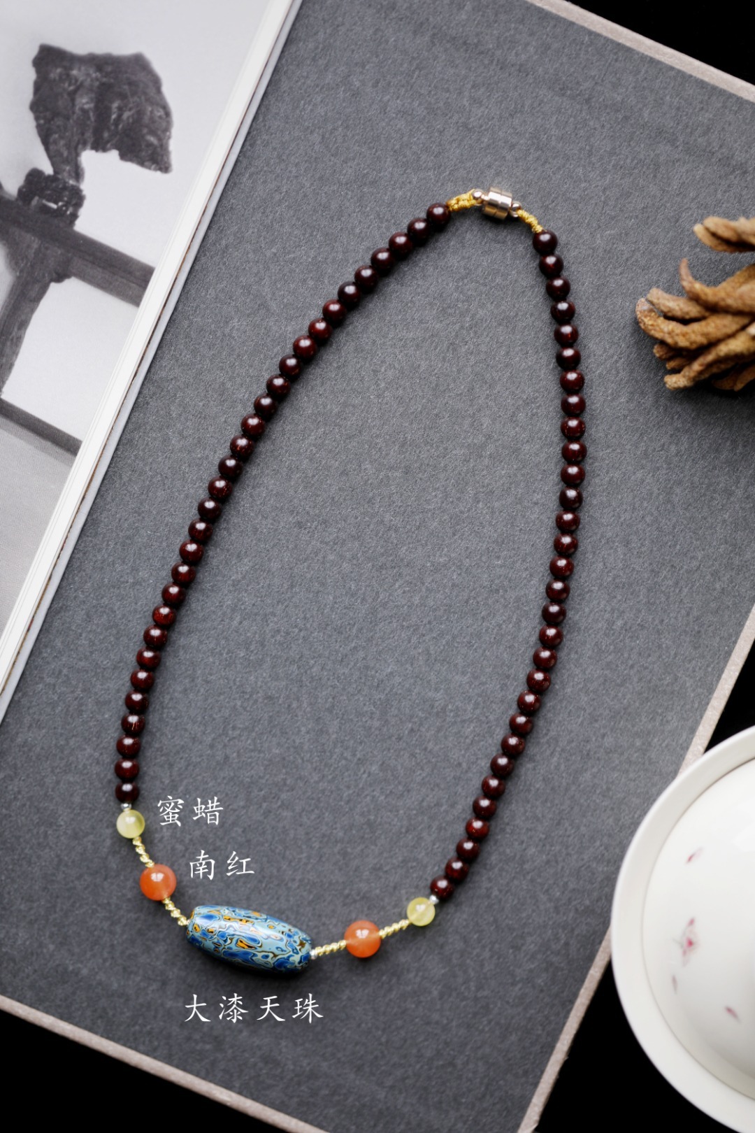 配件:南红、蜜蜡、大漆天珠 小叶紫檀原创【天韵】5mm 60颗 锁骨链