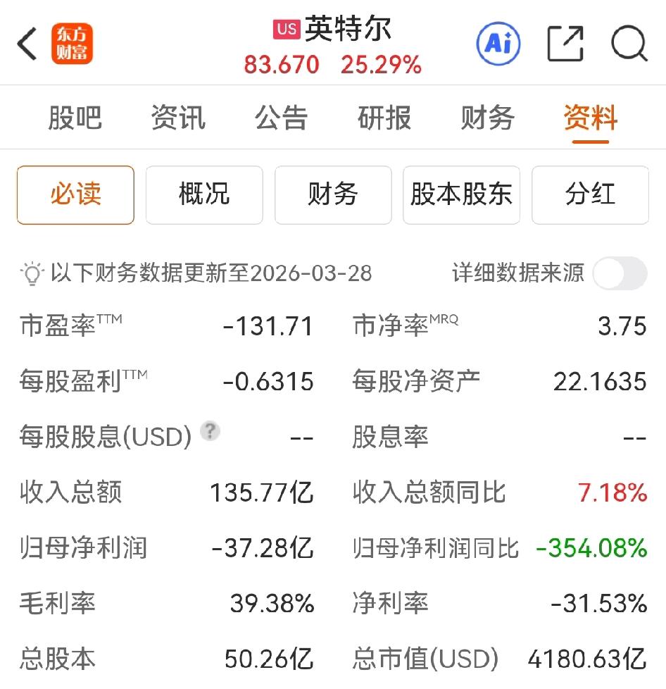 天下奇闻:英特尔发布季报,亏损37亿美元,同比下降354%,每股收益-0.63美元,让人吃惊。