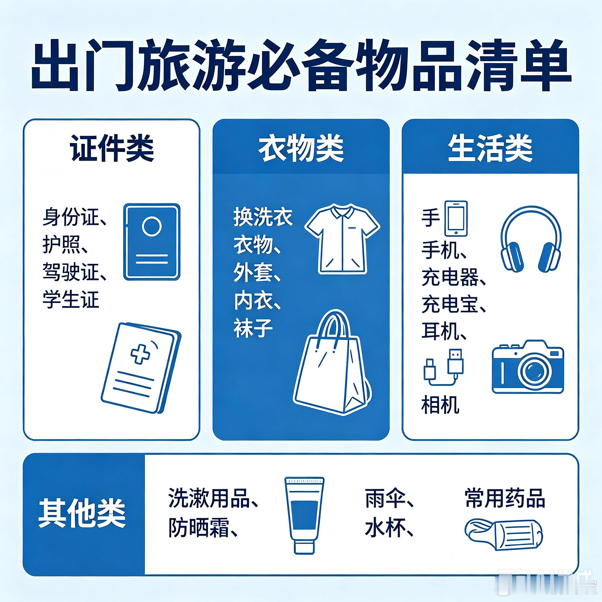 所有的提醒小tip都是:身手钥钱,然后就是充电器充电宝,甚至雨伞☂️,防晒,药物都有
