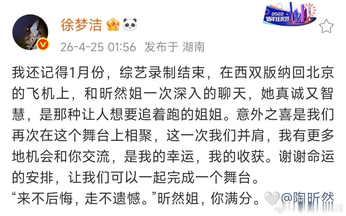 徐梦洁发文送别陶昕然徐梦洁说昕然姐你满分徐梦洁深夜发文送别陶昕然,回忆飞机上的深夜长谈,夸她是“让人想追着跑的姐姐”,这波双向奔赴的姐妹情,也太暖了吧!浪姐 赢了被淘汰