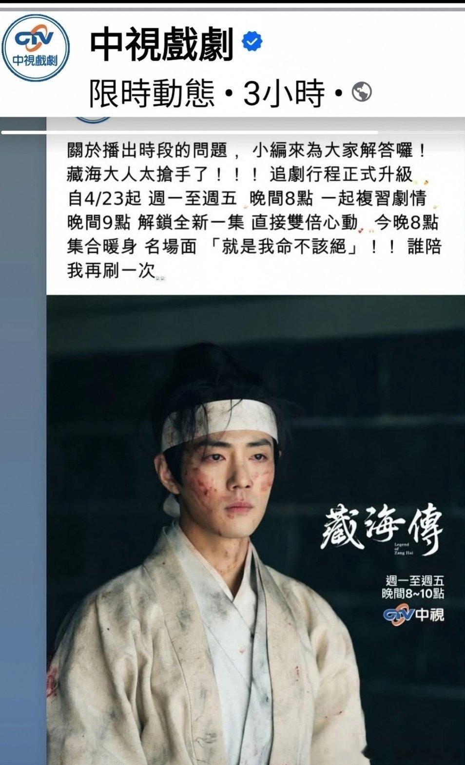 肖战的藏海传在台湾中视播的非常好,中视为了拉长热播时间,直接改了播出方式,用前情