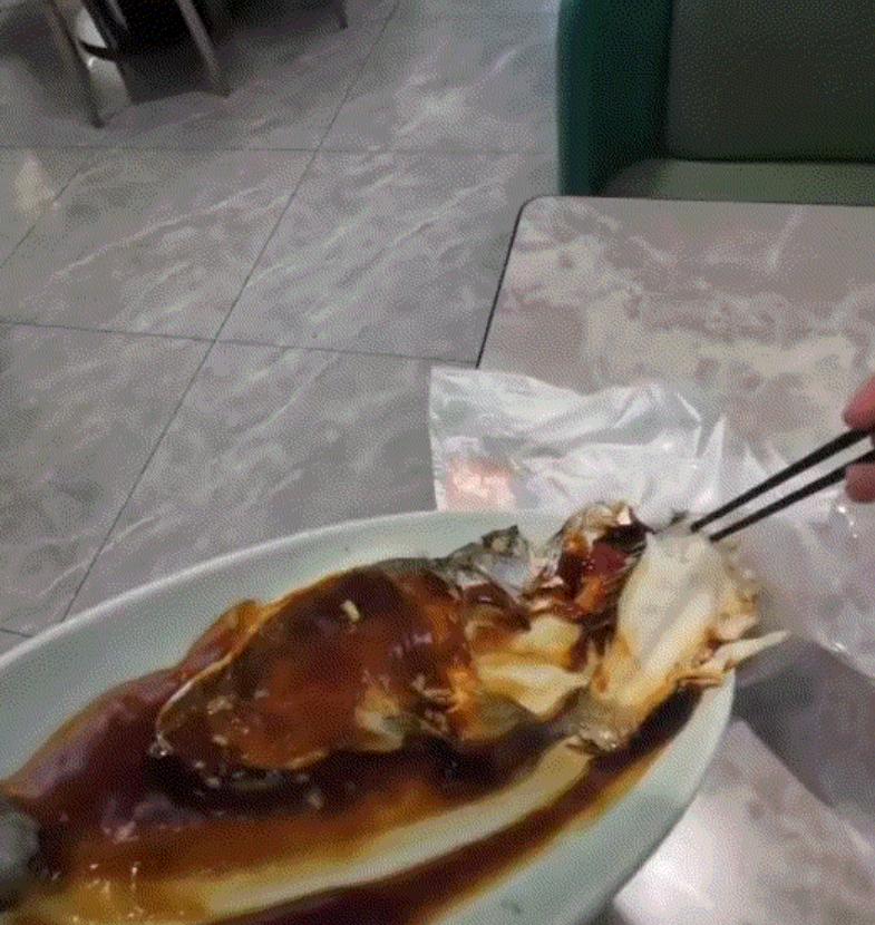 打定主意后,男子叫来服务员,找了一个干净的餐盒,小心翼翼地把西湖醋鱼打包好,付了钱就匆匆往家赶。