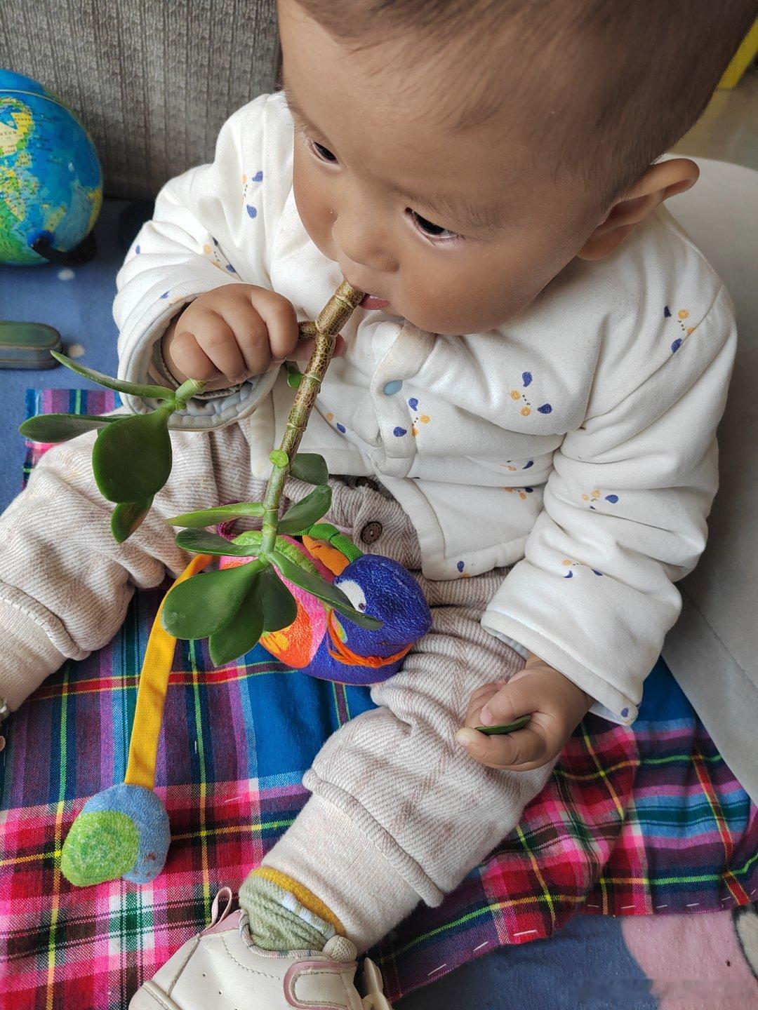 家有人类幼崽那些花花草草可遭了殃时不时被热情的“宠幸”一番那棵十多年的玉树快被薅