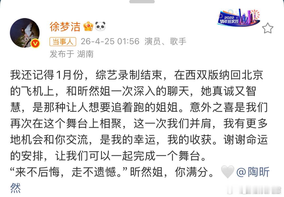 徐梦洁说昕然姐你满分昕然姐自带温柔光芒,气质和修养都超好,也难怪小彩虹这么喜欢,发自内心的满分评价,全是真心实意的喜欢与认可。