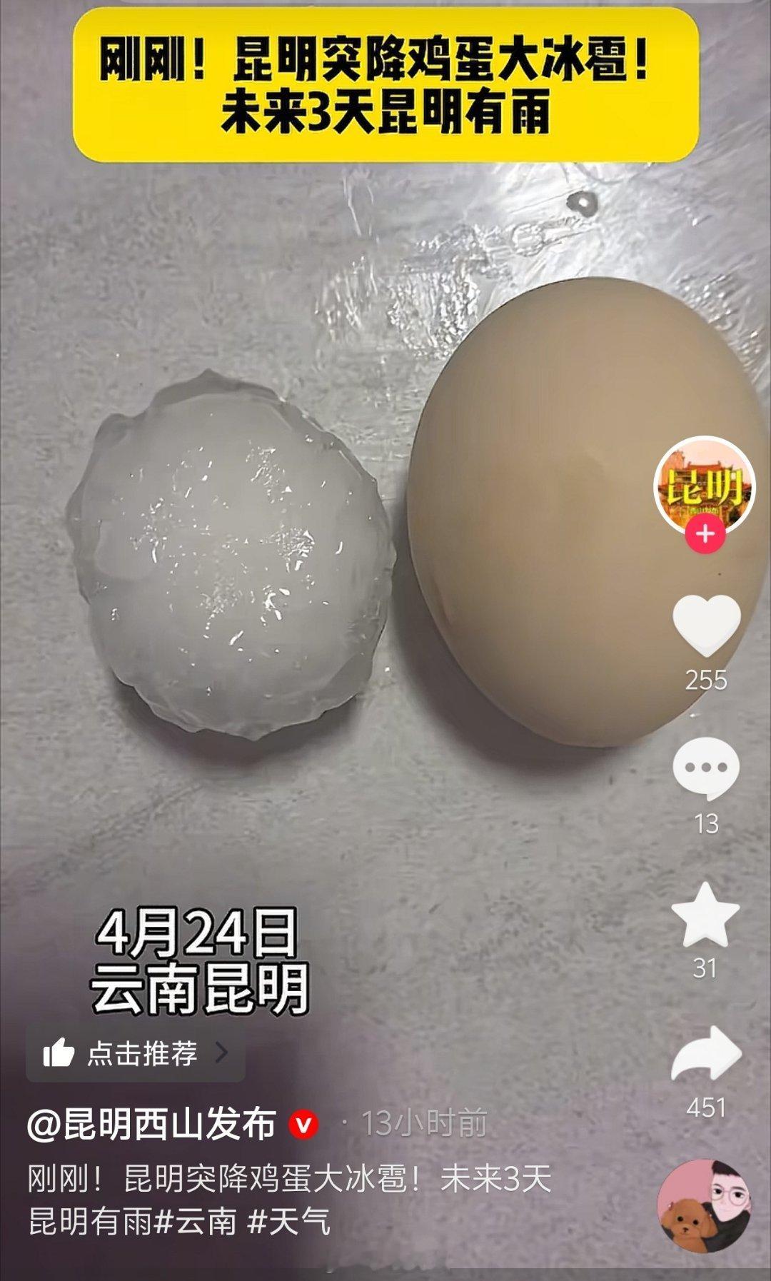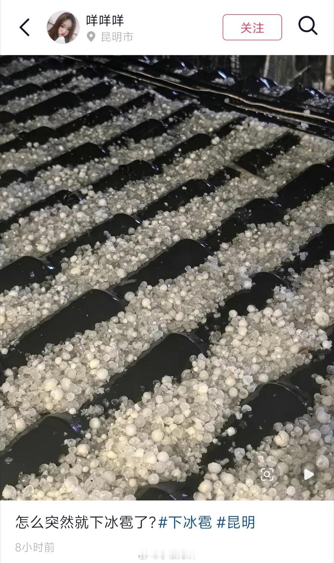 昆明昨天的冰雹太吓人了!鸡蛋大的冰疙瘩密密麻麻往下砸,持续半小时,路面秒变冰河,