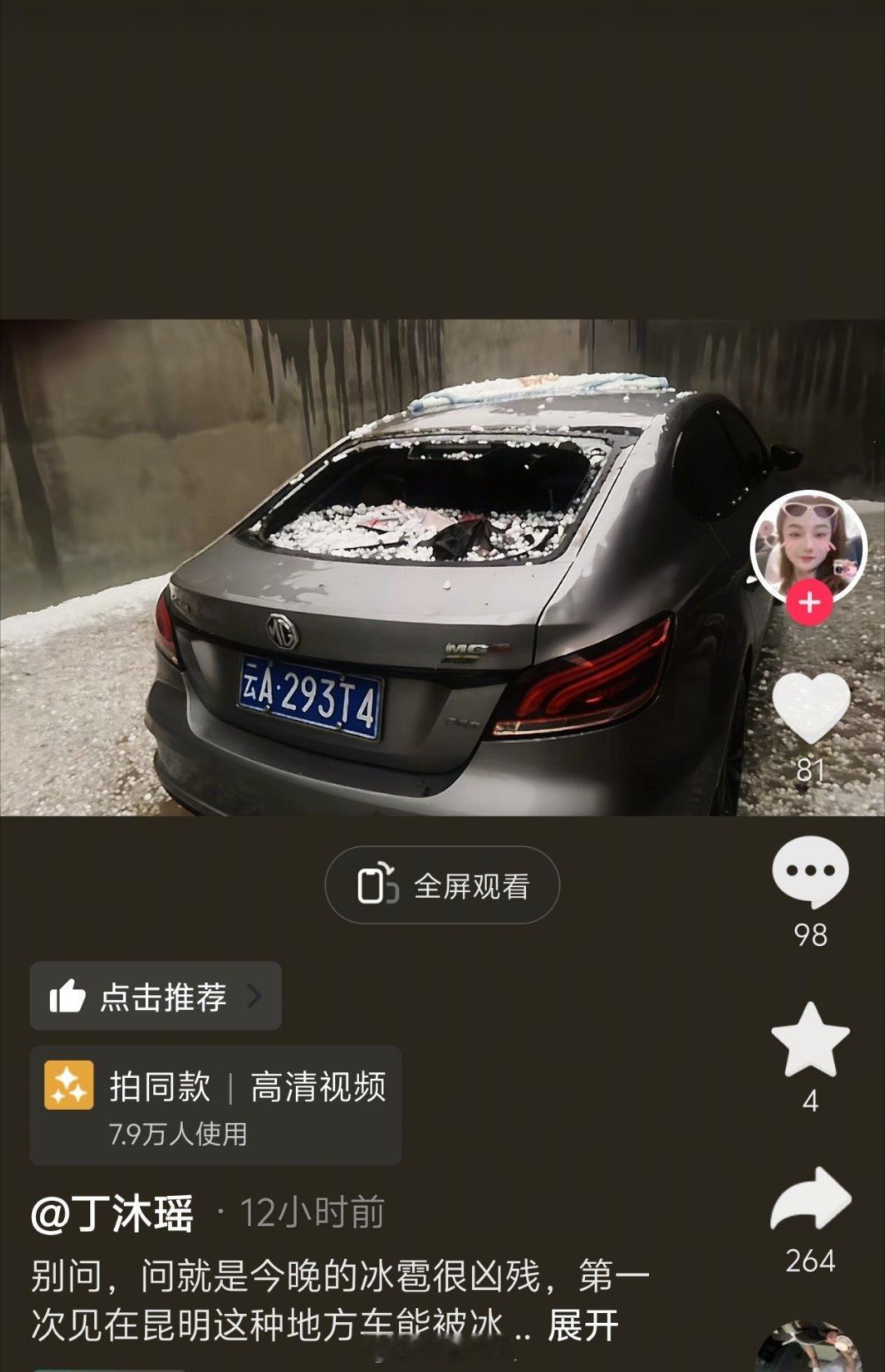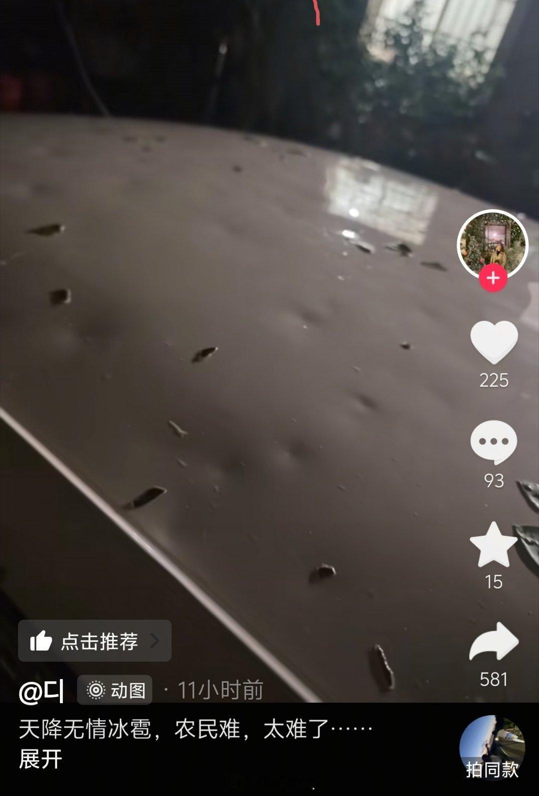 昆明昨天的冰雹太吓人了!鸡蛋大的冰疙瘩密密麻麻往下砸,持续半小时,路面秒变冰河,车顶被砸得全是坑,大棚直接被砸穿…这哪是下雨,简直是天灾!昆明冰雹嵩明鸡蛋大冰雹昆明