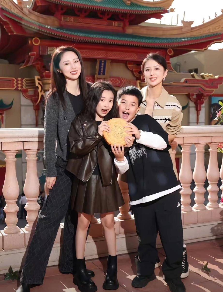 祖孙三人侧脸、神态高度统一,堪称“复制粘贴”,只有小酒窝继承了妈妈佟丽娅的温柔。