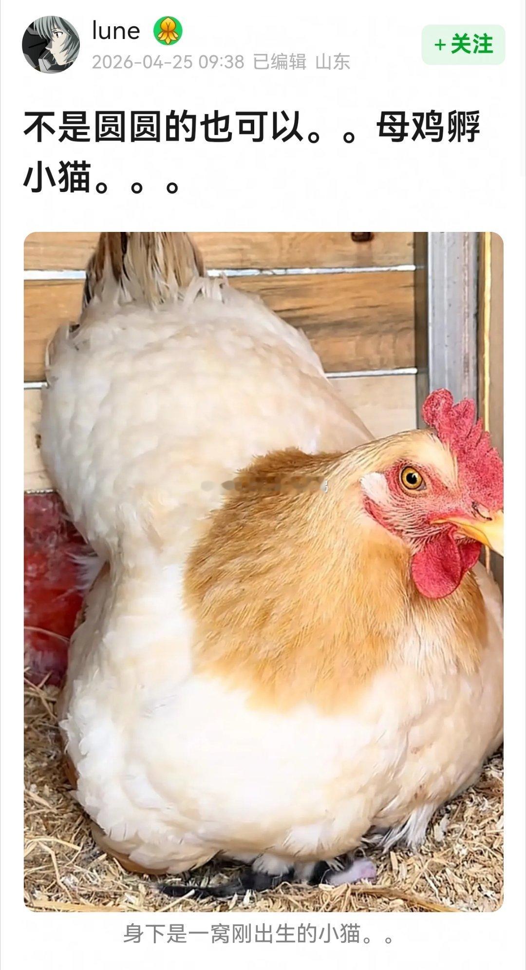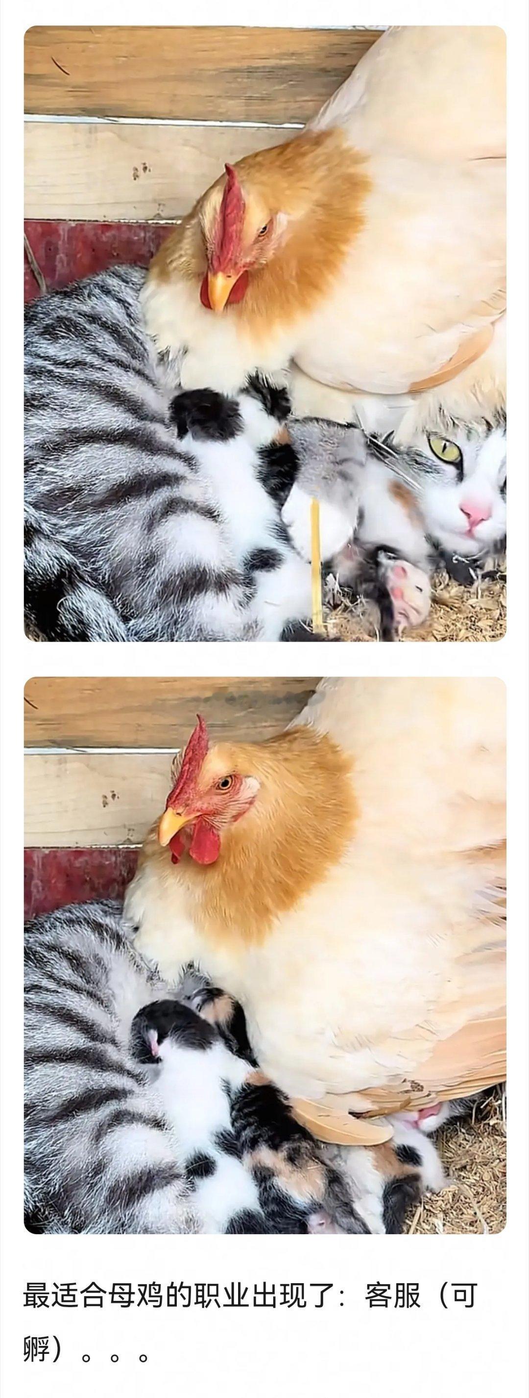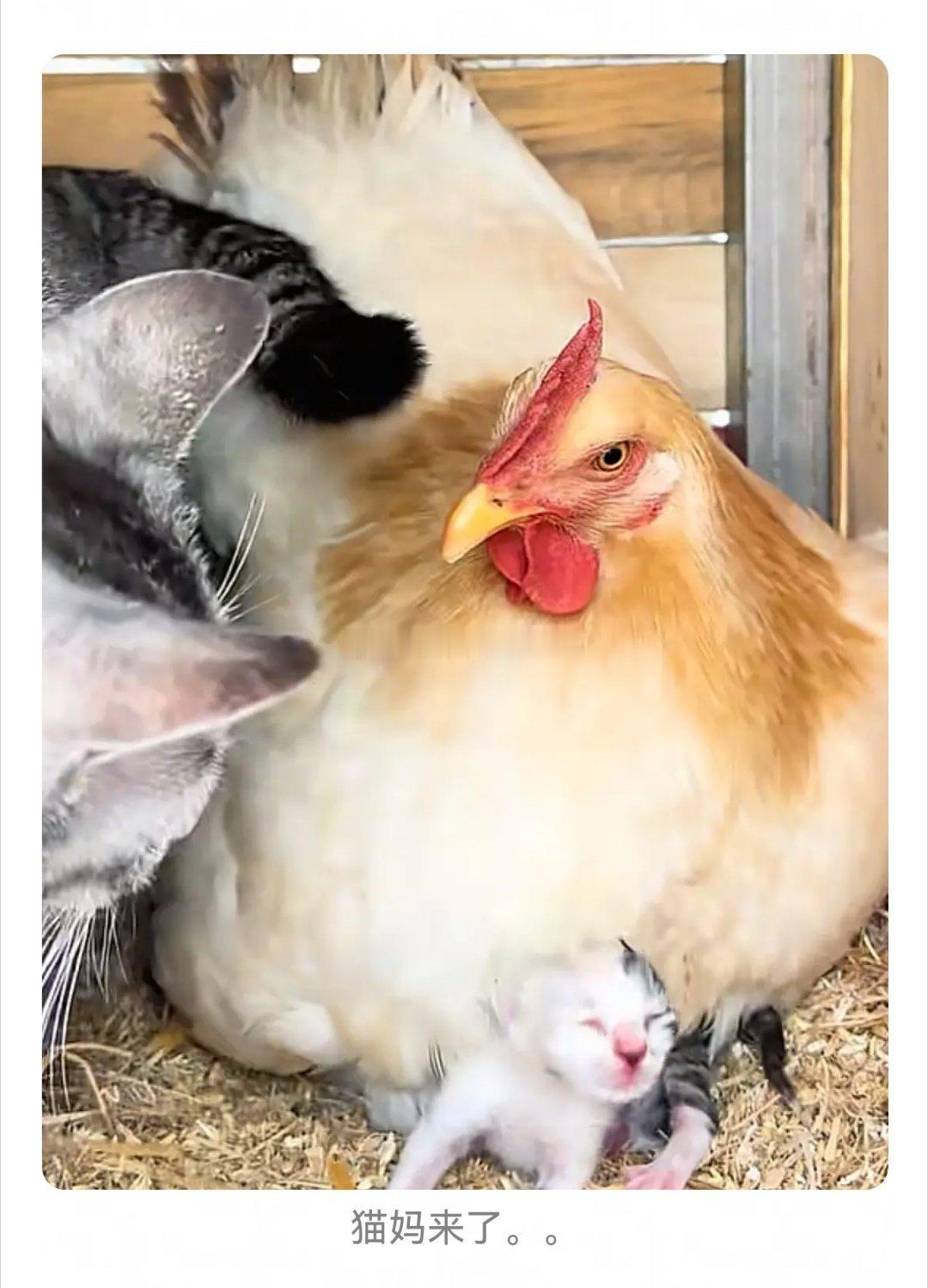 动画片《猫和老鼠》里的场景现实版,母鸡孵猫~