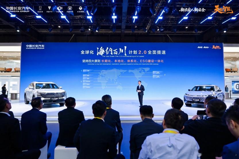 26 年北京车展,长安汽车发布「海纳百川」计划 2.0,坚守四大原则、推出七大升维举措,锚定 2030 年海外销量 150 万辆、奋斗 180 万辆。
