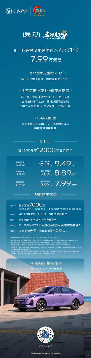 极致省油,长安第四代逸动蓝鲸超擎 7.99 万起舒适大空间,长安第四代 CS75