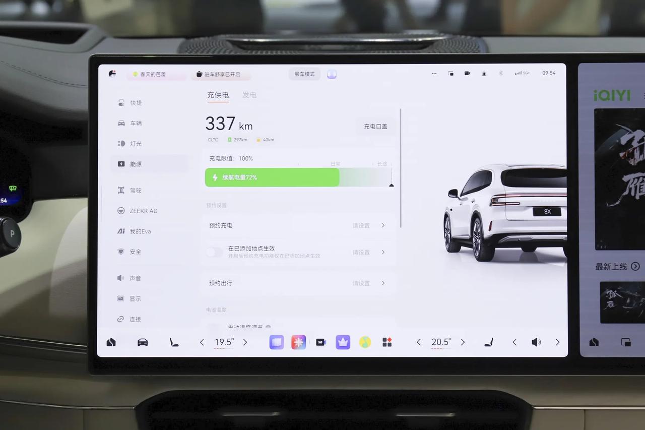 其实现在主流插混都有行车充电能力,但极氪 8X 把900V 高压、高功率发电、AI 能量管理堆到一起,把 “边跑边充” 的效率和实用性拉到了新高度。它不是噱头,而是解决混动核心痛点的实用技术。