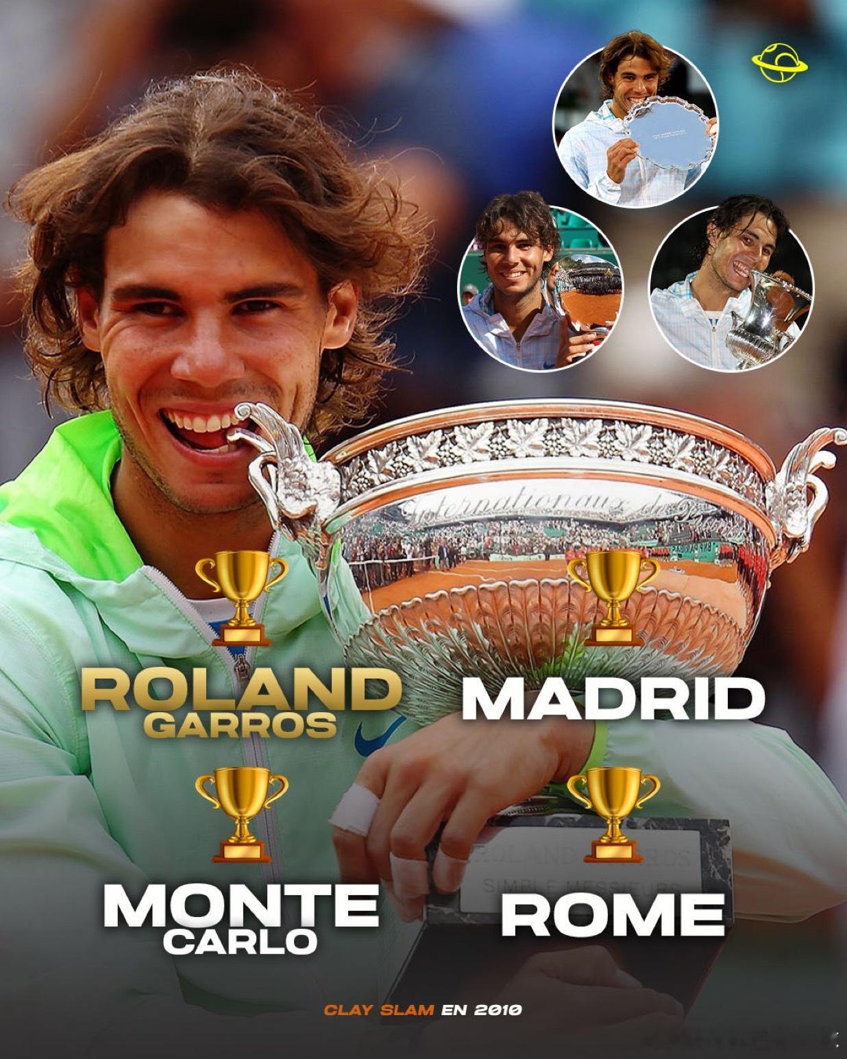 2010年,拉斐尔·纳达尔 🇪🇸 成为史上唯一达成红土全满贯的球员,连续包揽四项顶级红土重大赛事冠军。🤯🧡