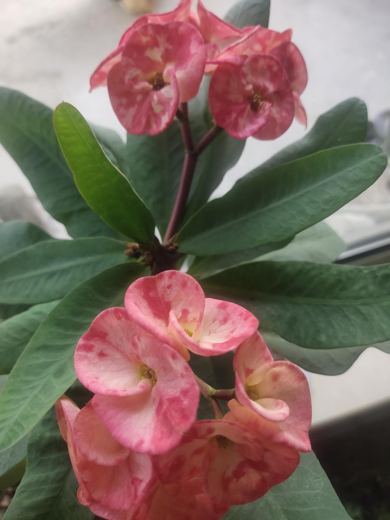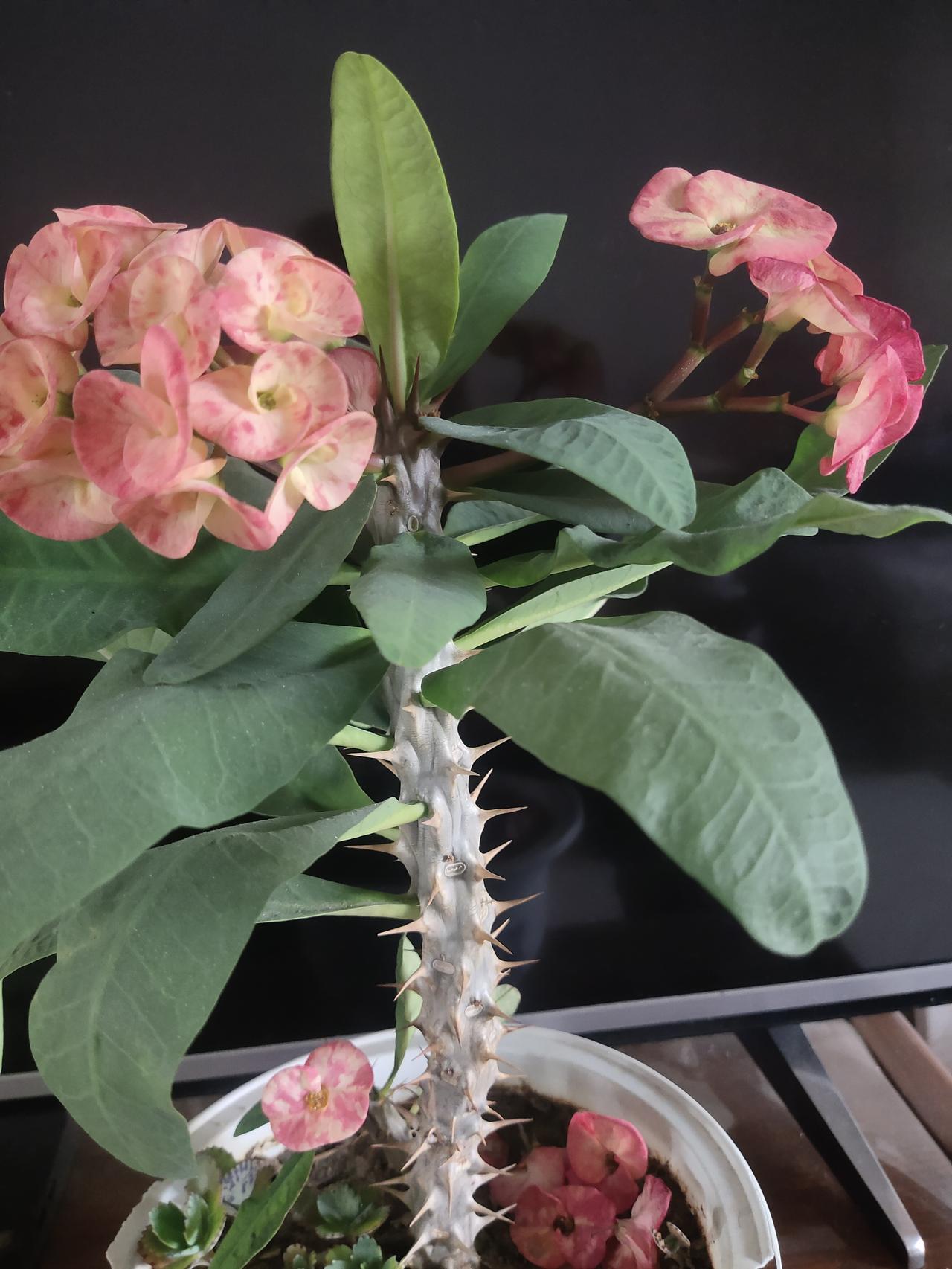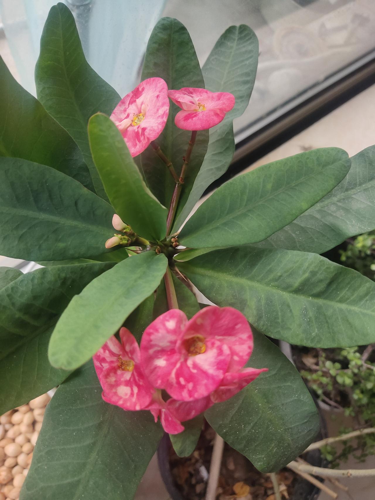 我的红虎刺梅再度绽放花朵,这盆花着实不错,一年四季花开不断。 这几日花开得着实不少,只是颜色并非十分红艳,远不及冬季绽放时那般艳丽,也不知是何缘由。我将它置于阳台上,阳光十分充足,可花儿的颜色为何如此淡雅呢?