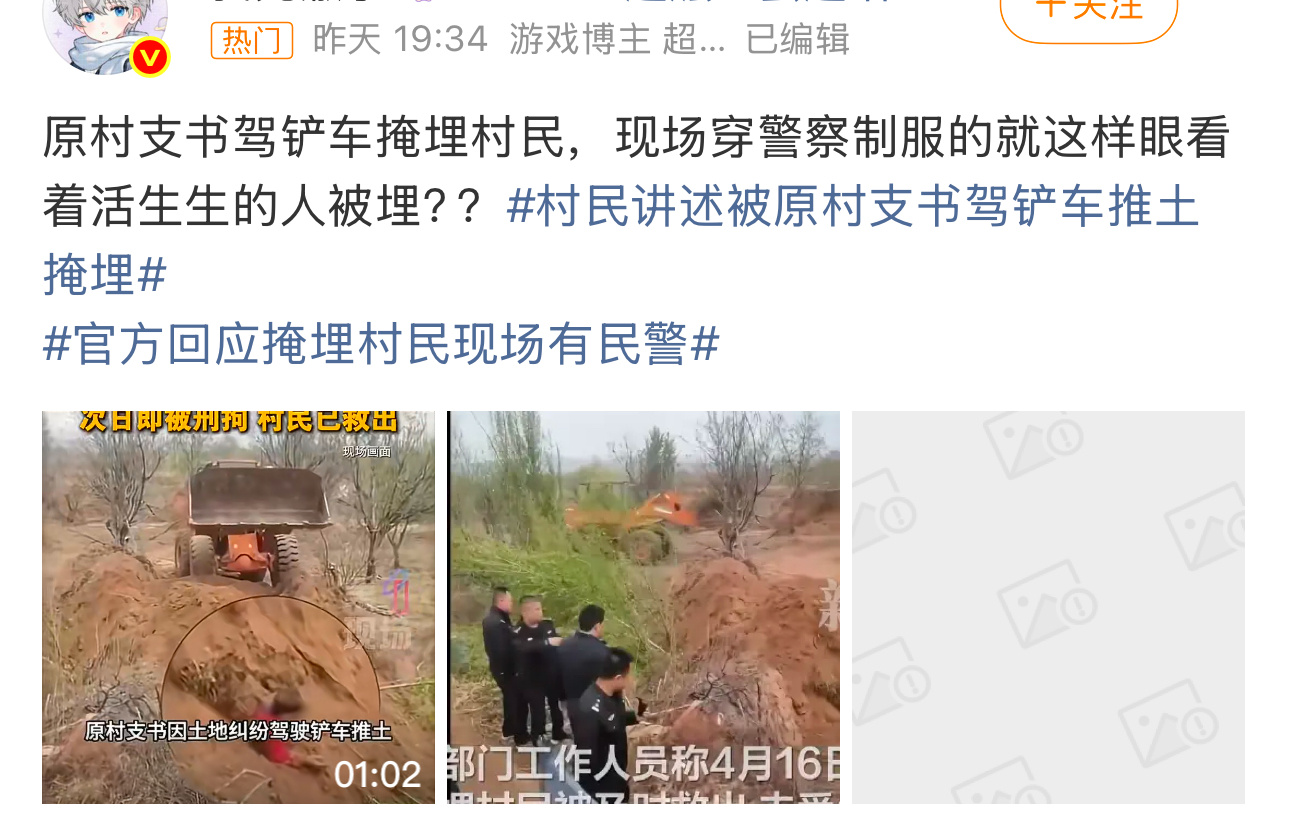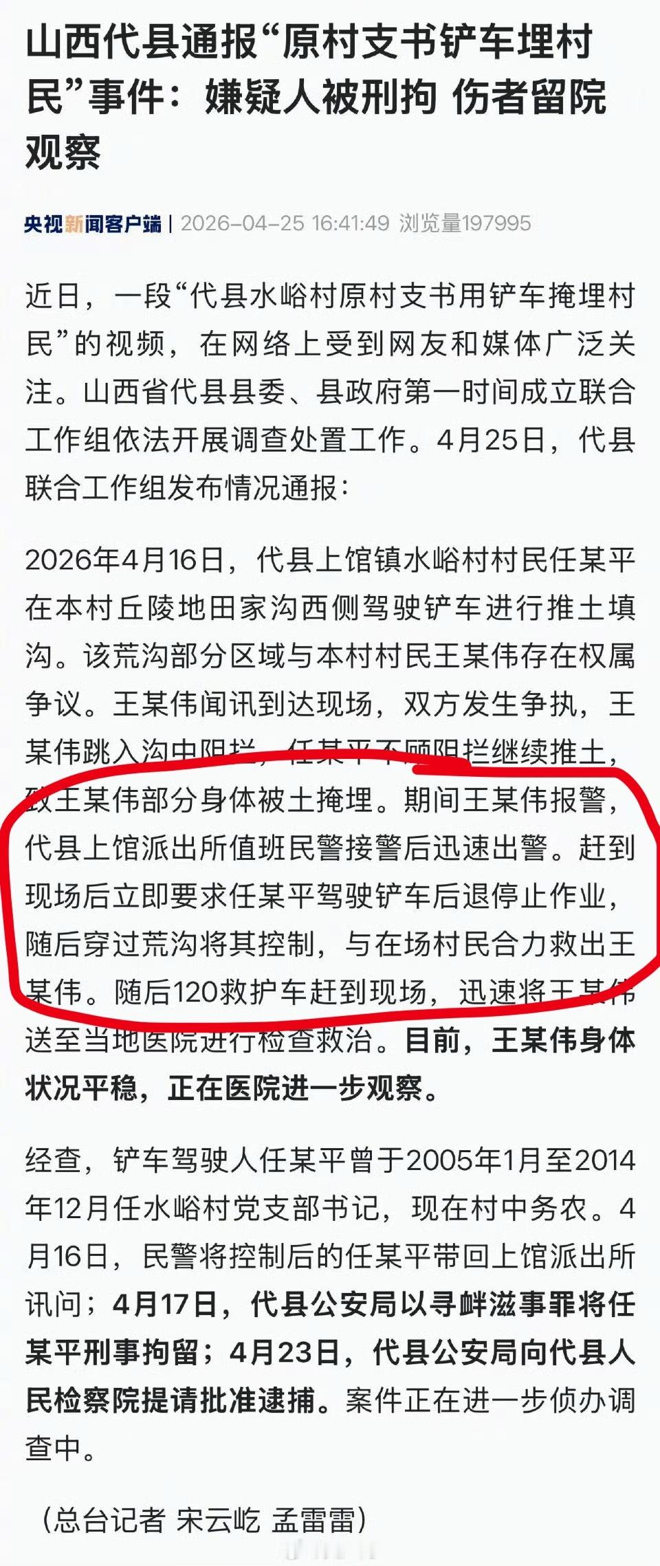 官方通报原村支书铲车埋村民事件热点观点 官方通报原村支书铲车埋村民事件