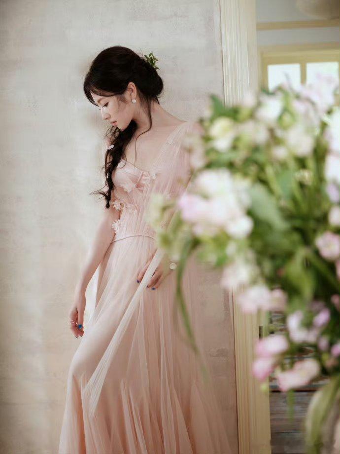 李兰迪线下美成这样了李兰迪线下路透美成这样了 脱离精修依旧绝美,粉纱长裙造型温