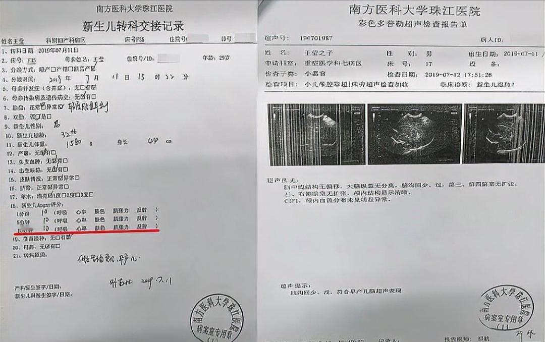 2019年,王莹在广州南方医科大学珠江医院早产生下男婴栓柱,出生时阿氏评分为10分,显示正常。因早产体重低,孩子被送入新生儿科保温箱。约一周后,医院通知孩子病情危重并开始抢救。随后的CT检查显示孩子有颅内出血等症状,医院最终诊断为脑积水引起的脑瘫。此后的七年,父母带着孩子辗转多地求医,耗尽家财、负债累累,但孩子状况持续恶化,七岁时身高仅90公分,体重仅18斤,无法走路说话。