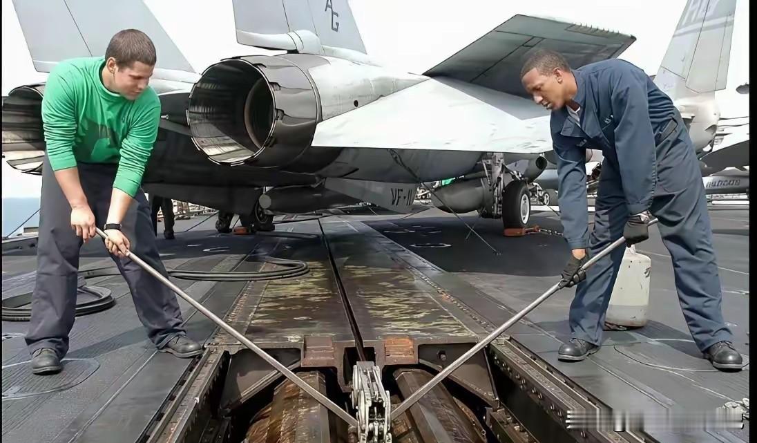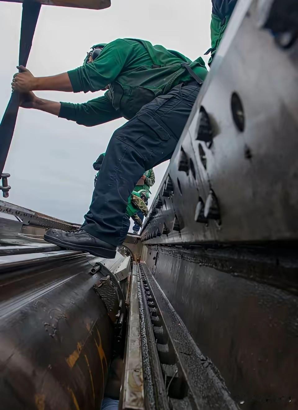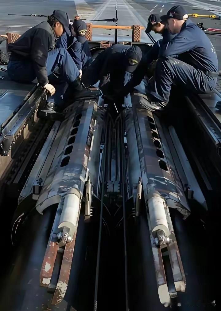 美军在检修蒸汽弹射的轨道,这个东西看上去很复杂,其实一点不简单。 对于一些国家来说,蒸汽弹射就是他们的天花板,就是给你图纸,你也造不出来,对于我们来说,根本没有学的必要,因为我们有电磁弹射,这才是美军最需要的。