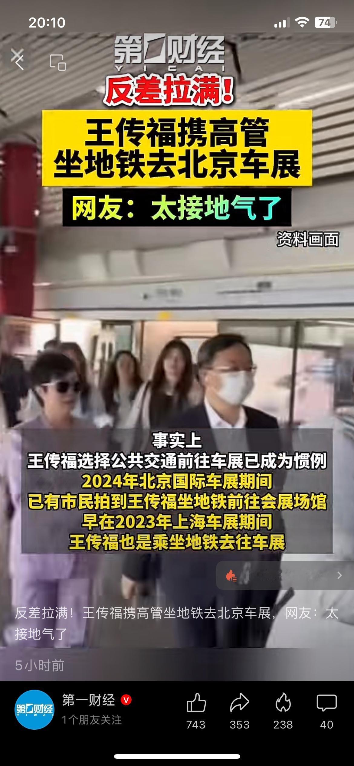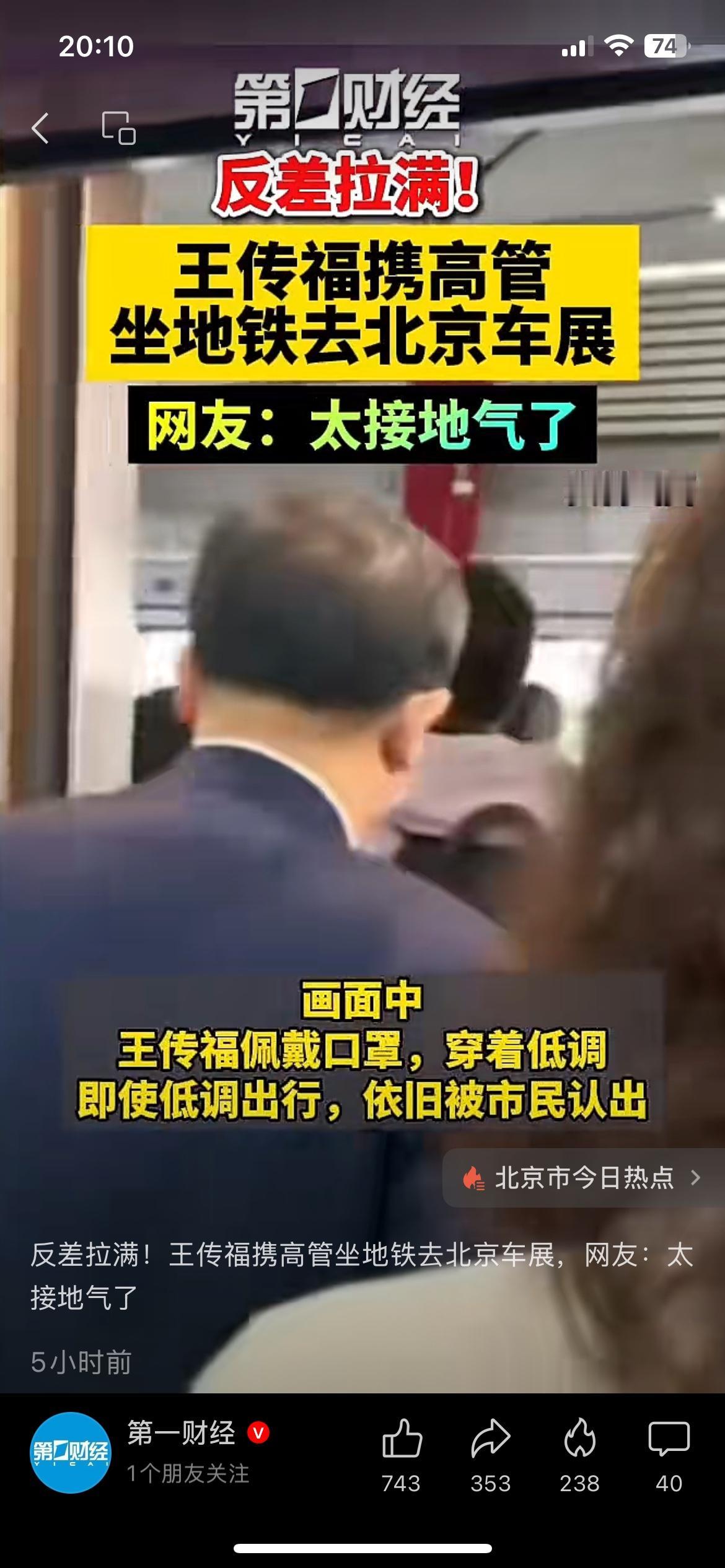 比亚迪董事长王传福坐地铁去北京车展,被网友偶遇拍下,反差感拉满。 千亿身家的老板,不坐专车挤地铁,被网友直呼太接地气。 比亚迪现在的销量,确实也得靠这种务实劲撑起来。 你怎么看这种“反差”操作? 王传福 比亚迪