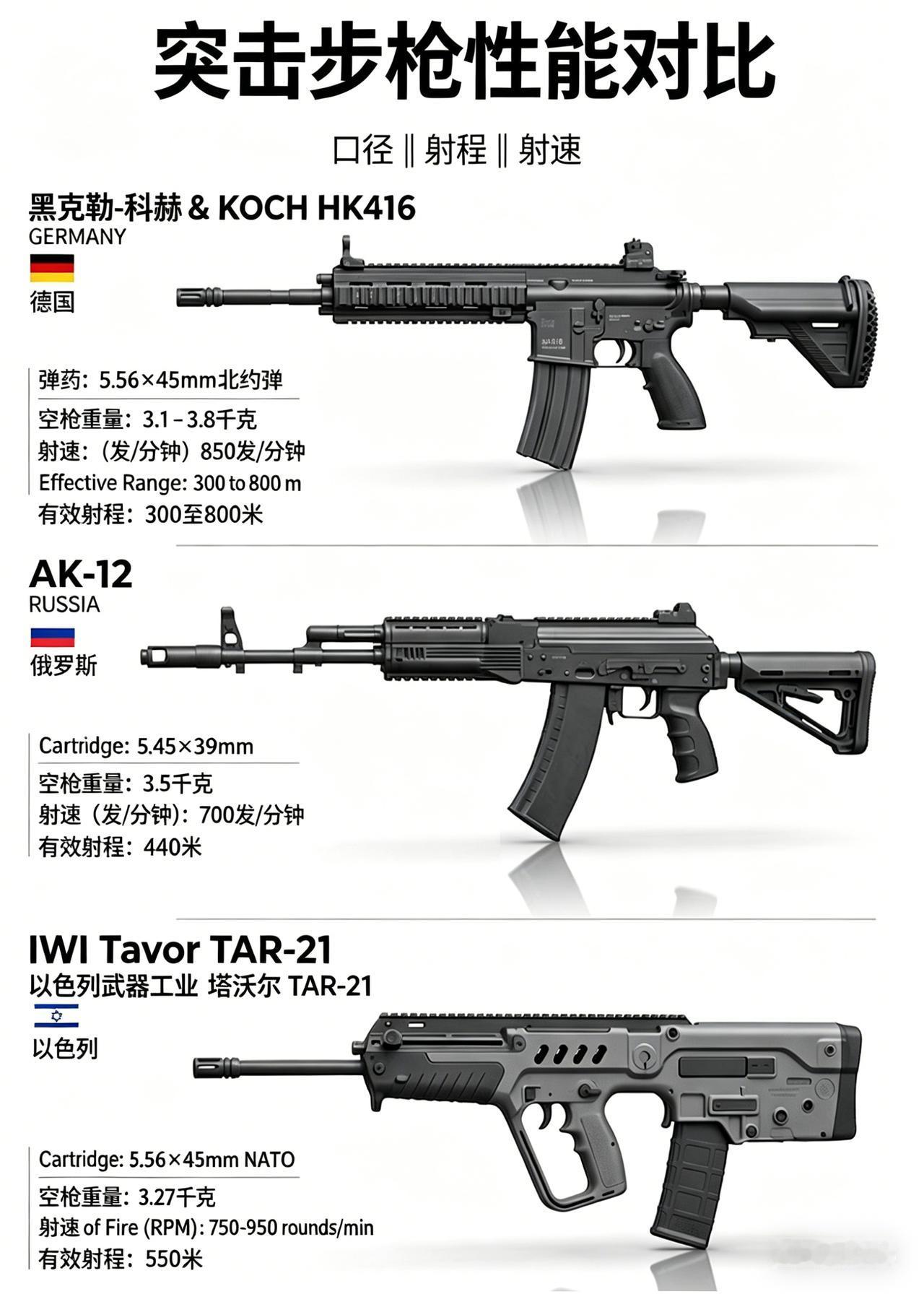 一张图看懂三款各国主力突击步枪的核心参数,从设计思路到实战定位,差别一目了然