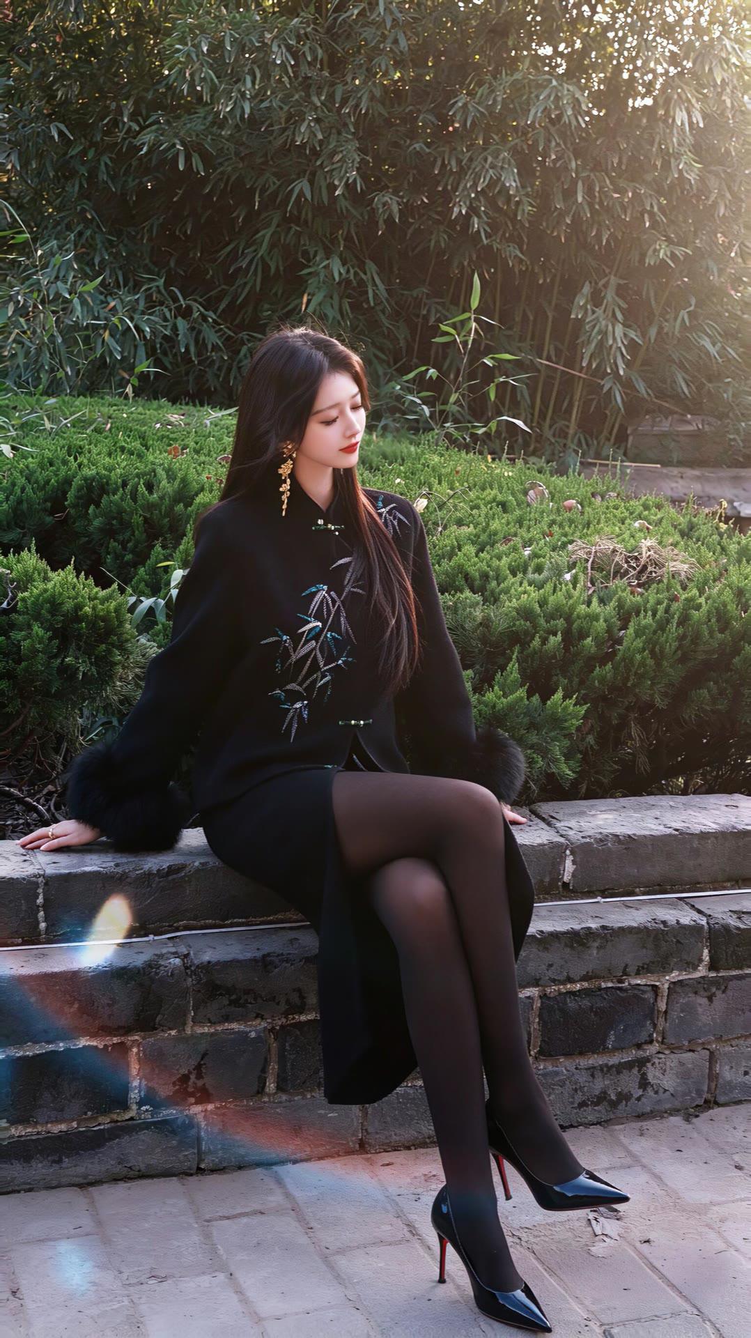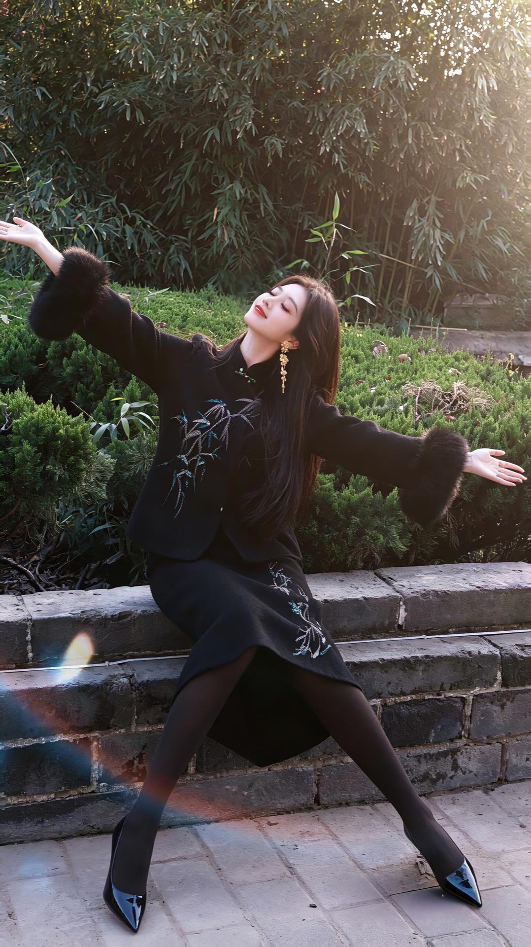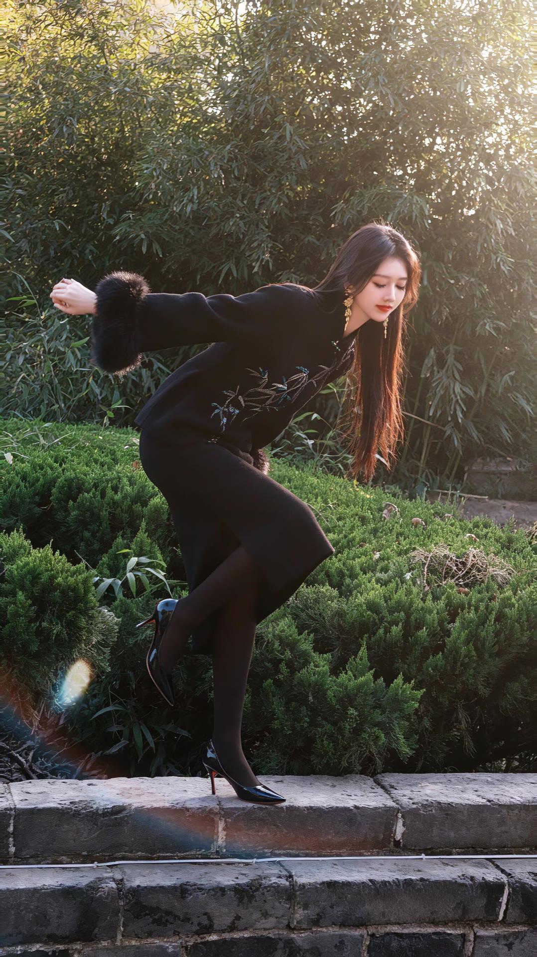 张纯烨,黑色穿搭美腿,清澈明净。张纯烨