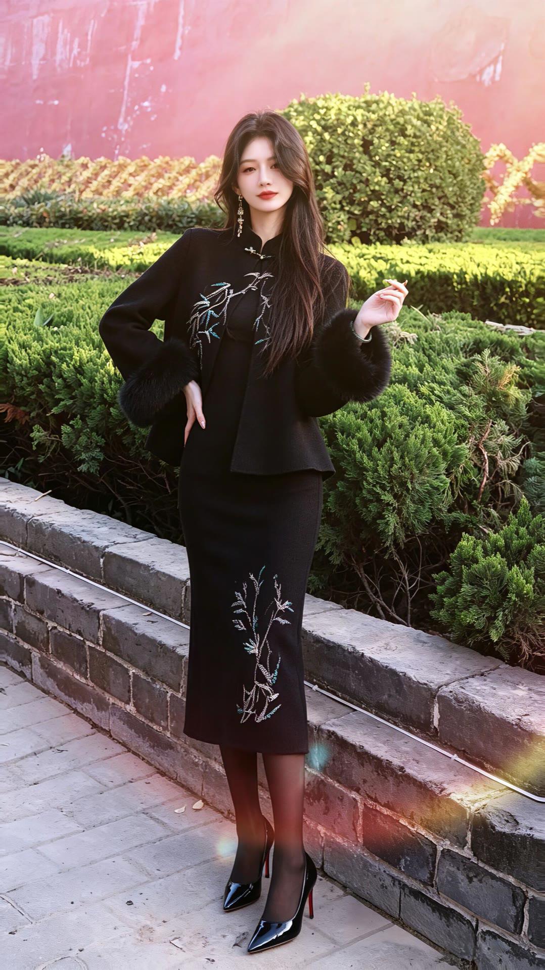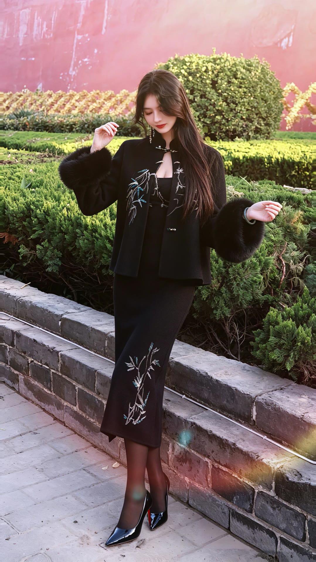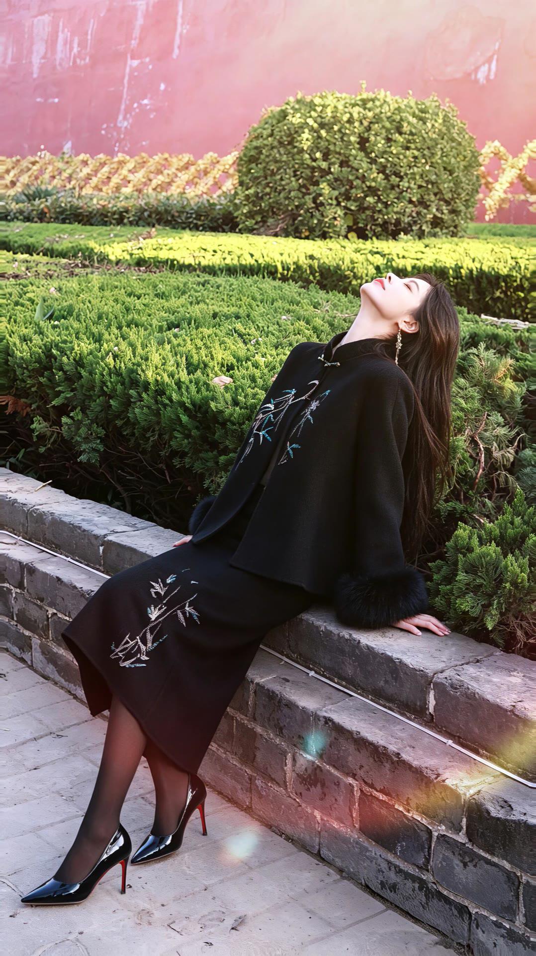张纯烨,黑色穿搭美腿,清澈明净。张纯烨