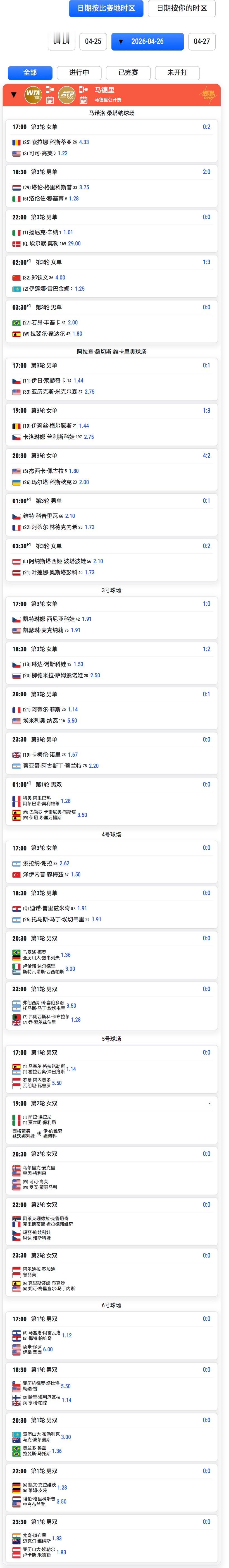 马德里1000赛 4月26日赛程⏰