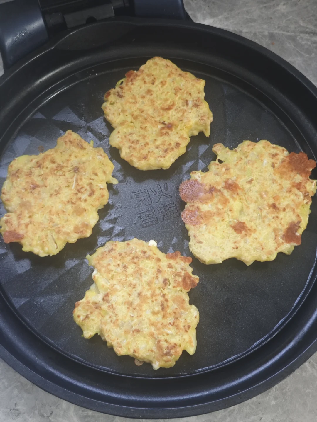 3️⃣电饼铛直接开火,取适量面糊摊成小饼