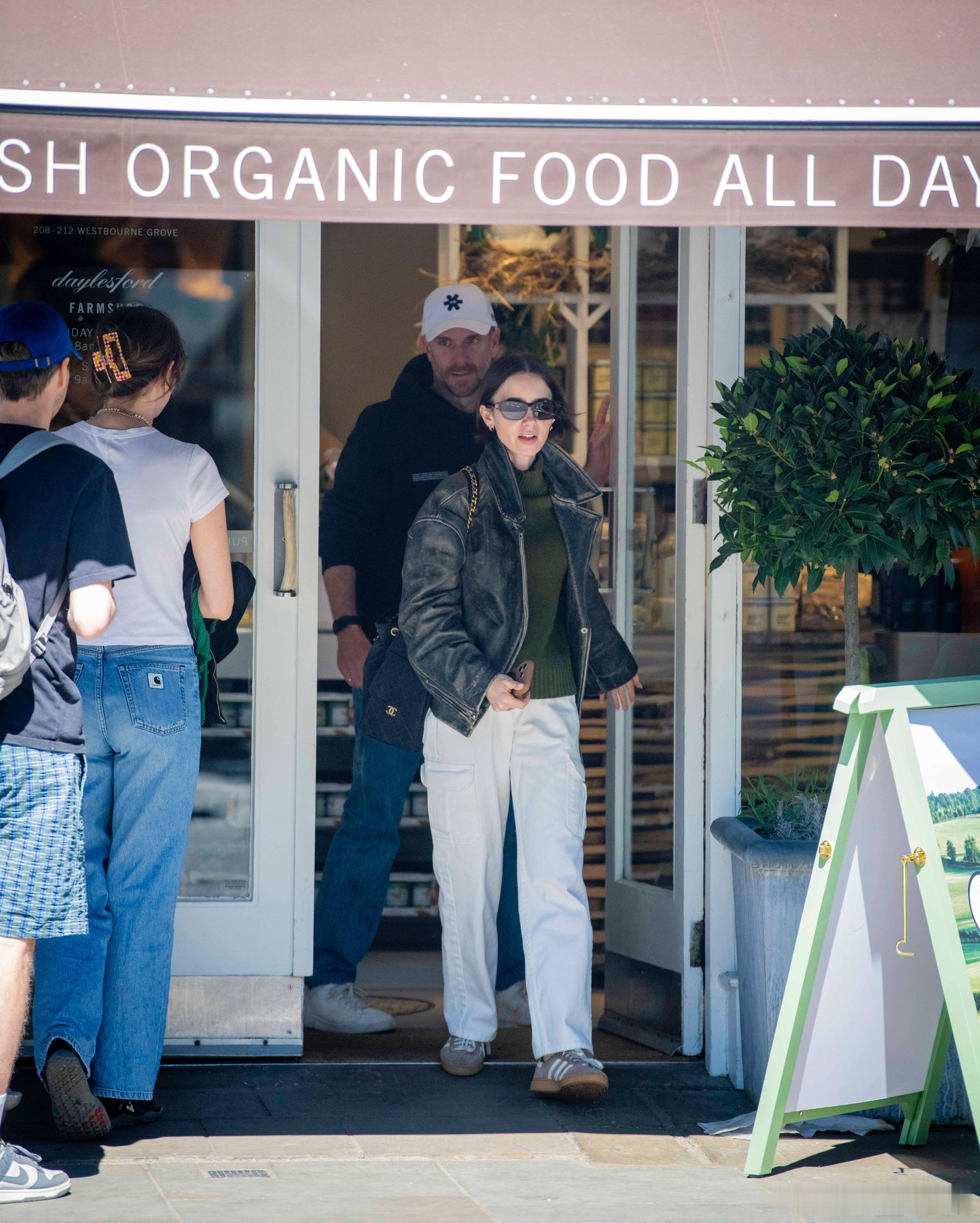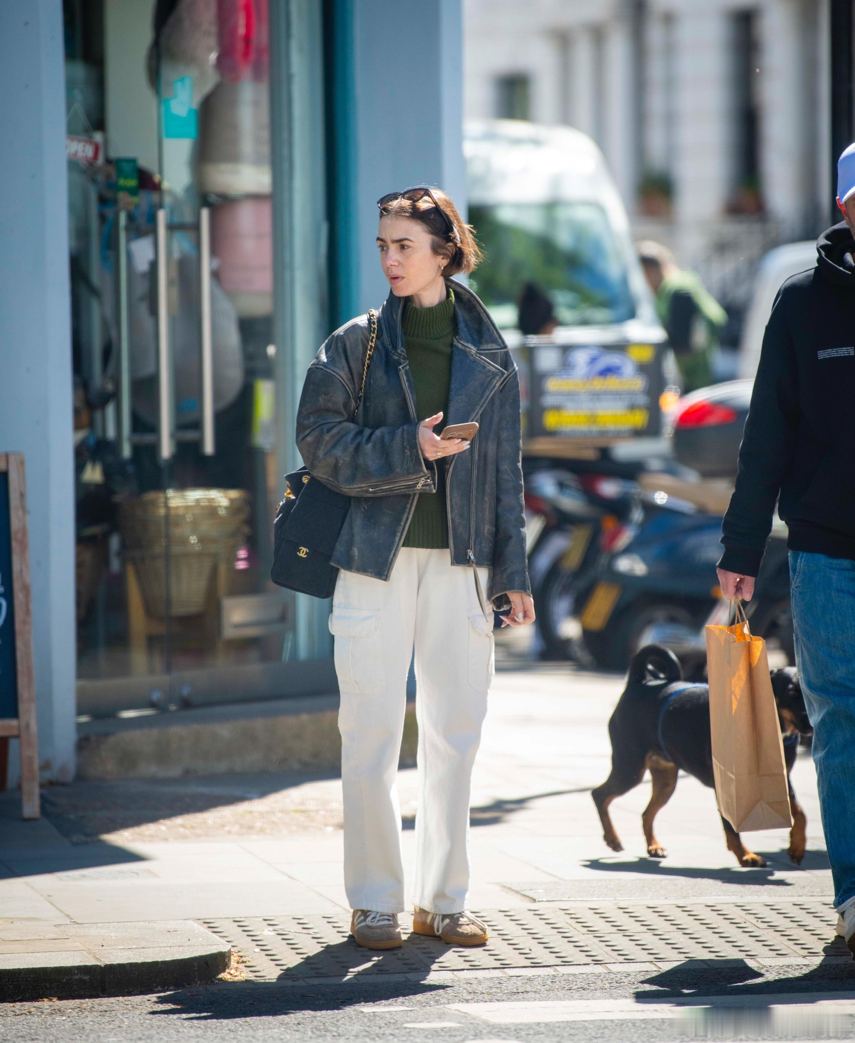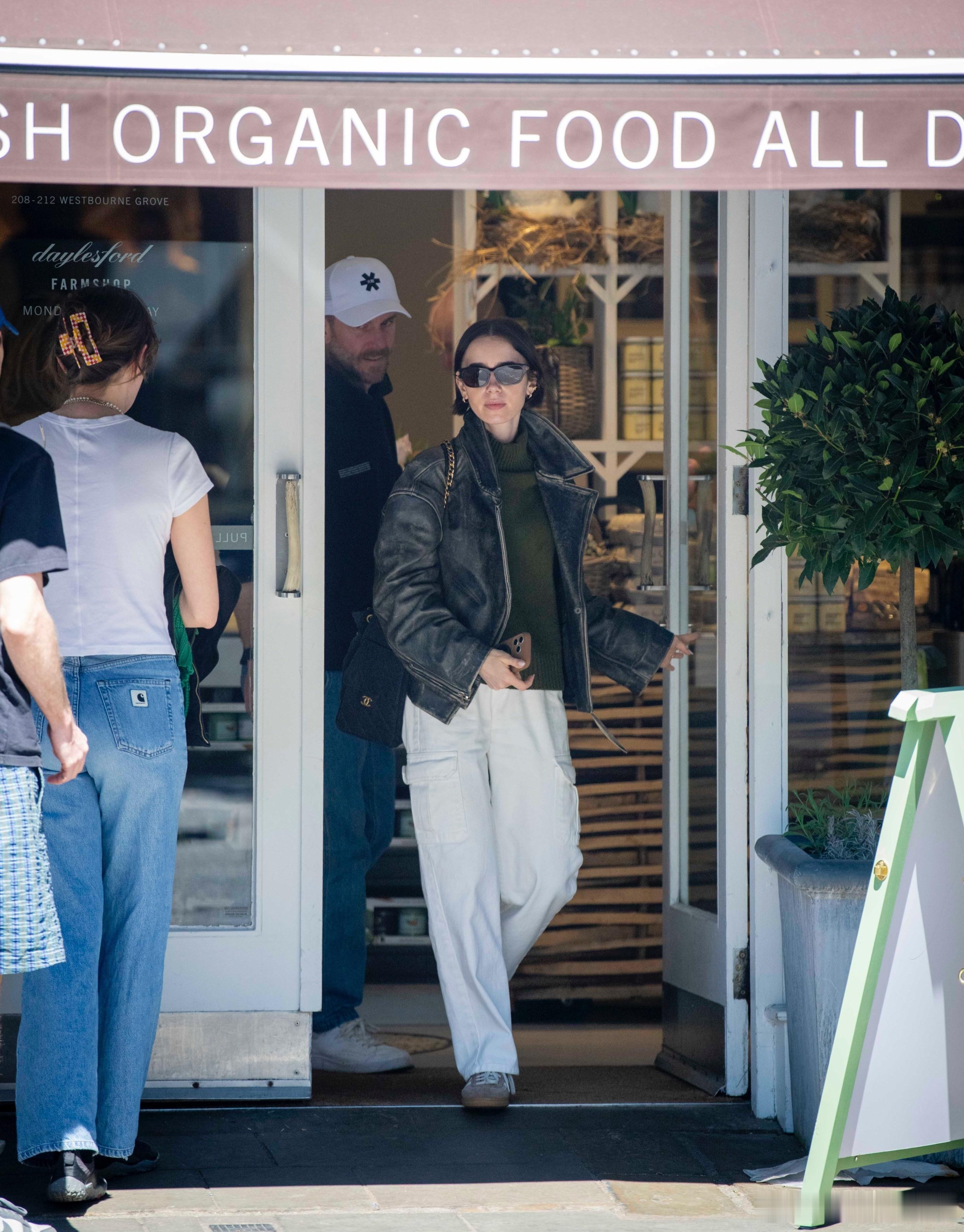 Lily collins莉莉柯林斯和老公Charlie McDowell在伦敦外出,两人前往一家宠物用品店为爱犬Redford进行采购