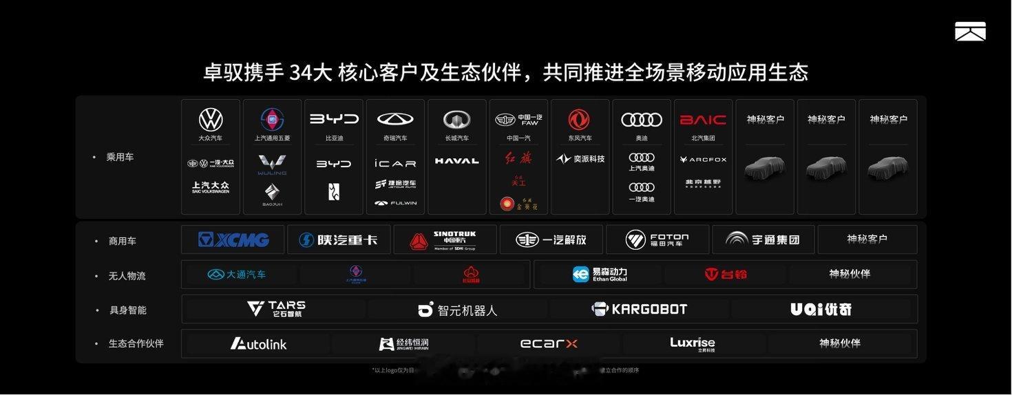 2026北京车展卓驭科技以“智能一切移动”为主题,推出首个原生多模态基础模型,定义“移动物理AI”技术内核,实现跨垂类、跨地域开箱即用。目前已在乘用车、商用车(重卡TOP6、宇通客车)、无人物流及Robotaxi全面落地,携手中国一汽共筑智能出行生态。从“端到端”迈向“涌现级”大模型,让万物自主移动成为现实。