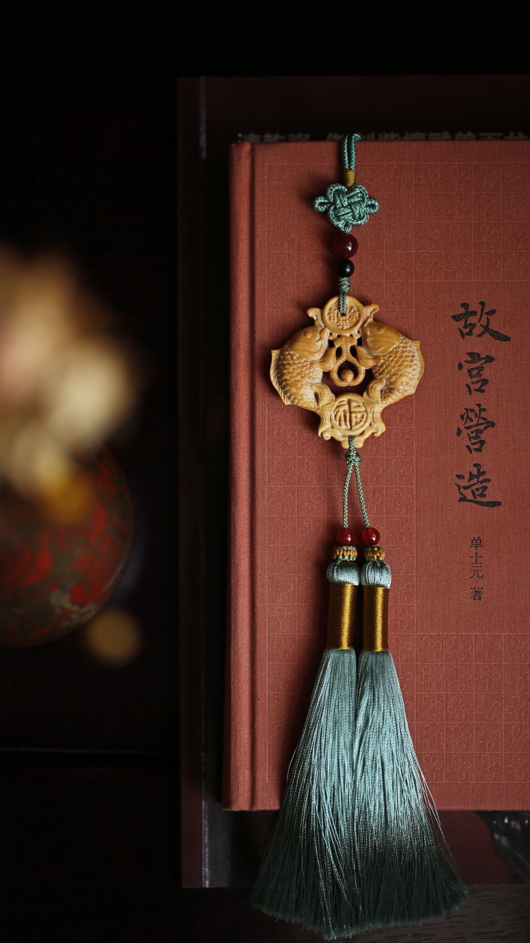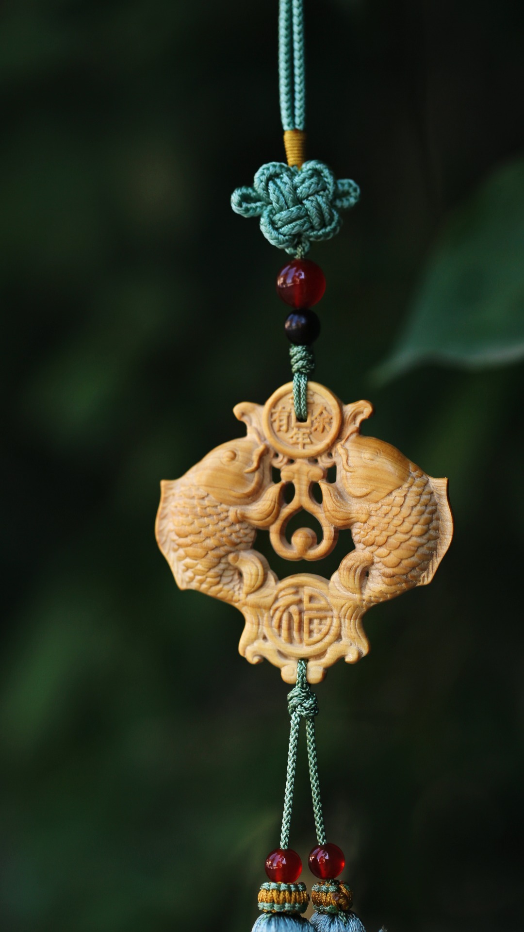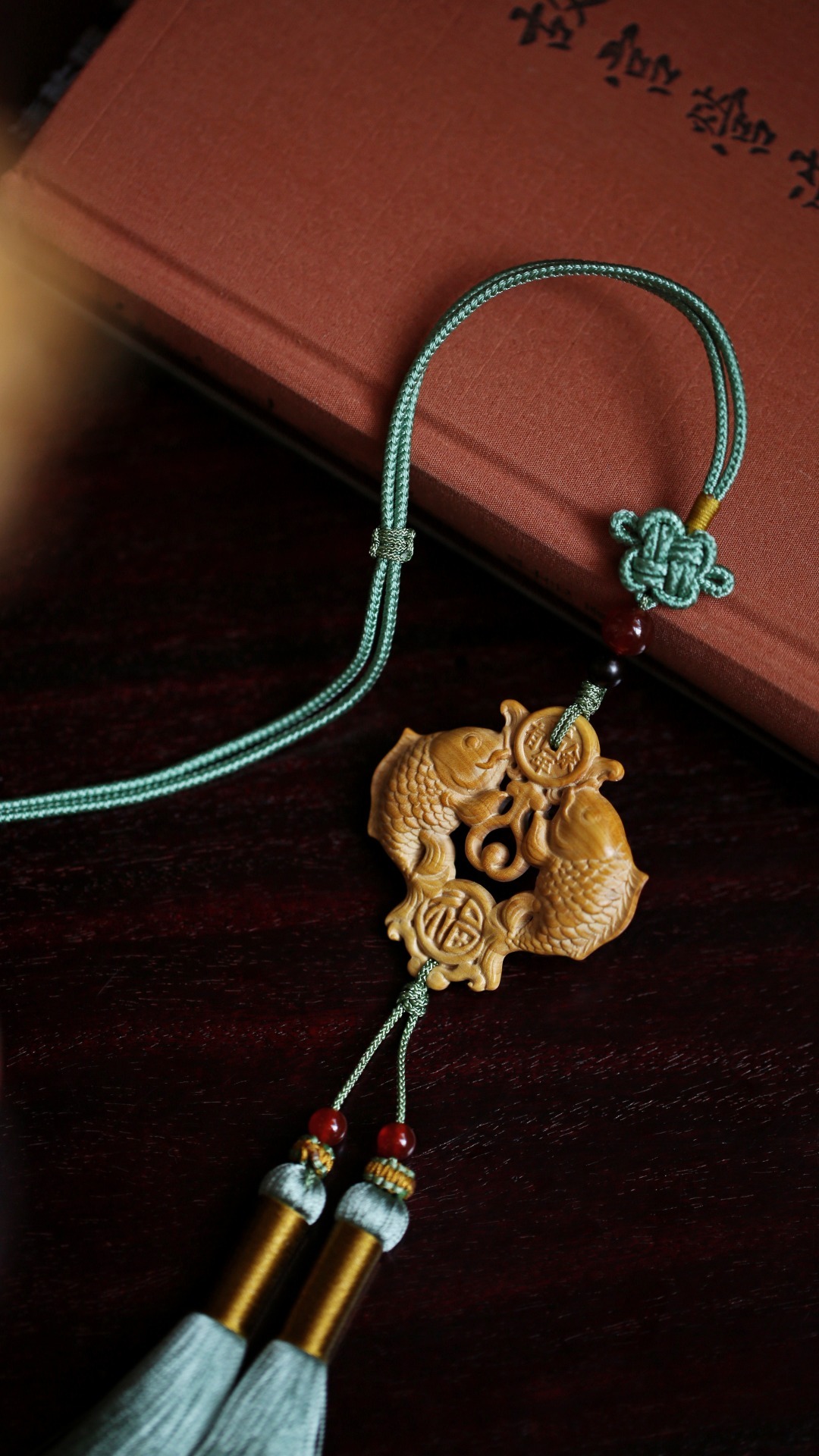 黄杨木【年年有余】挂件手工中国编绳,充满宫廷风,配上了流苏,可当包挂车挂等,寓“