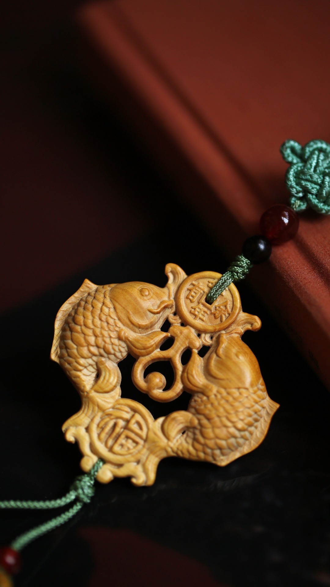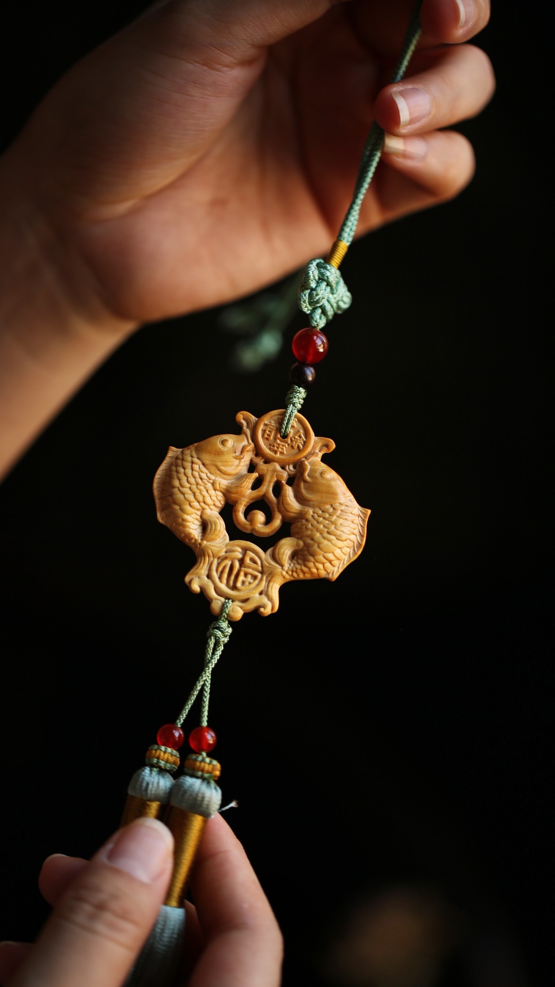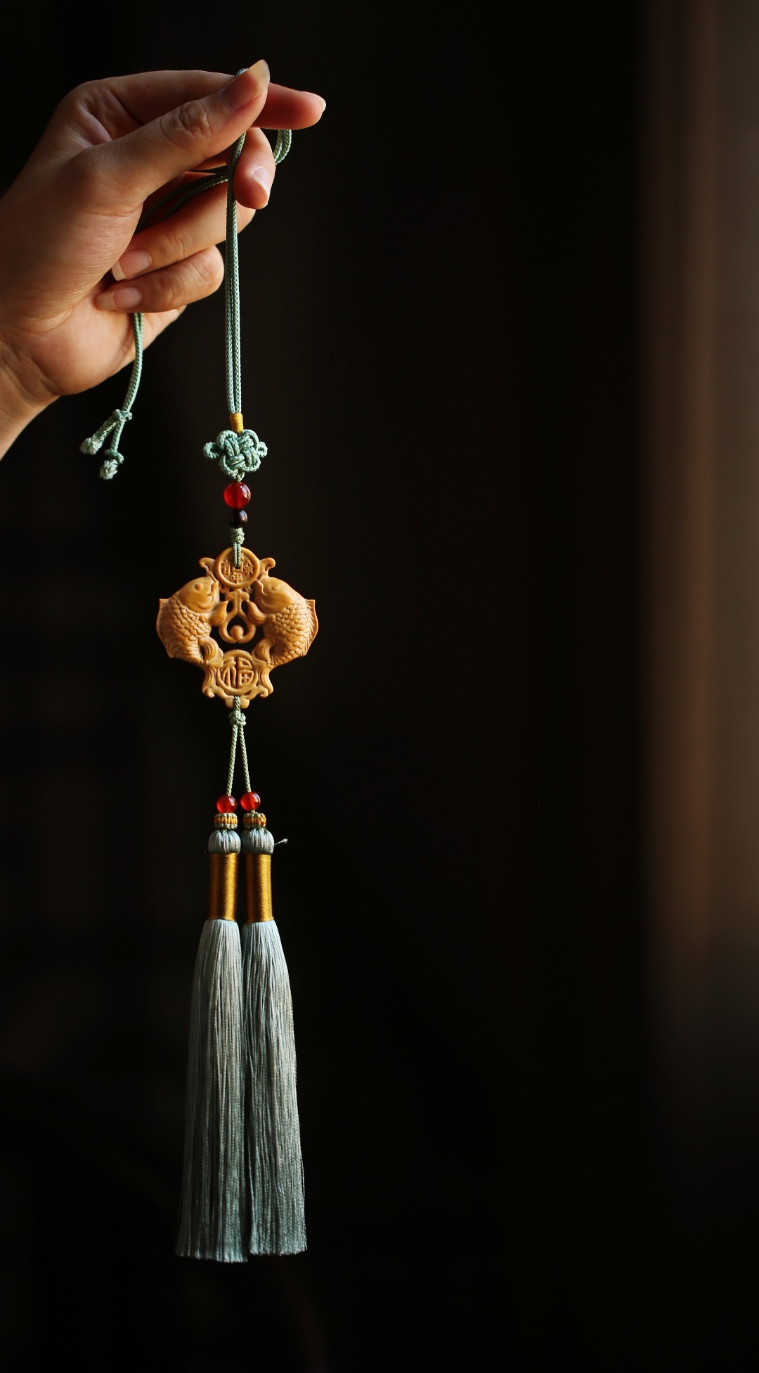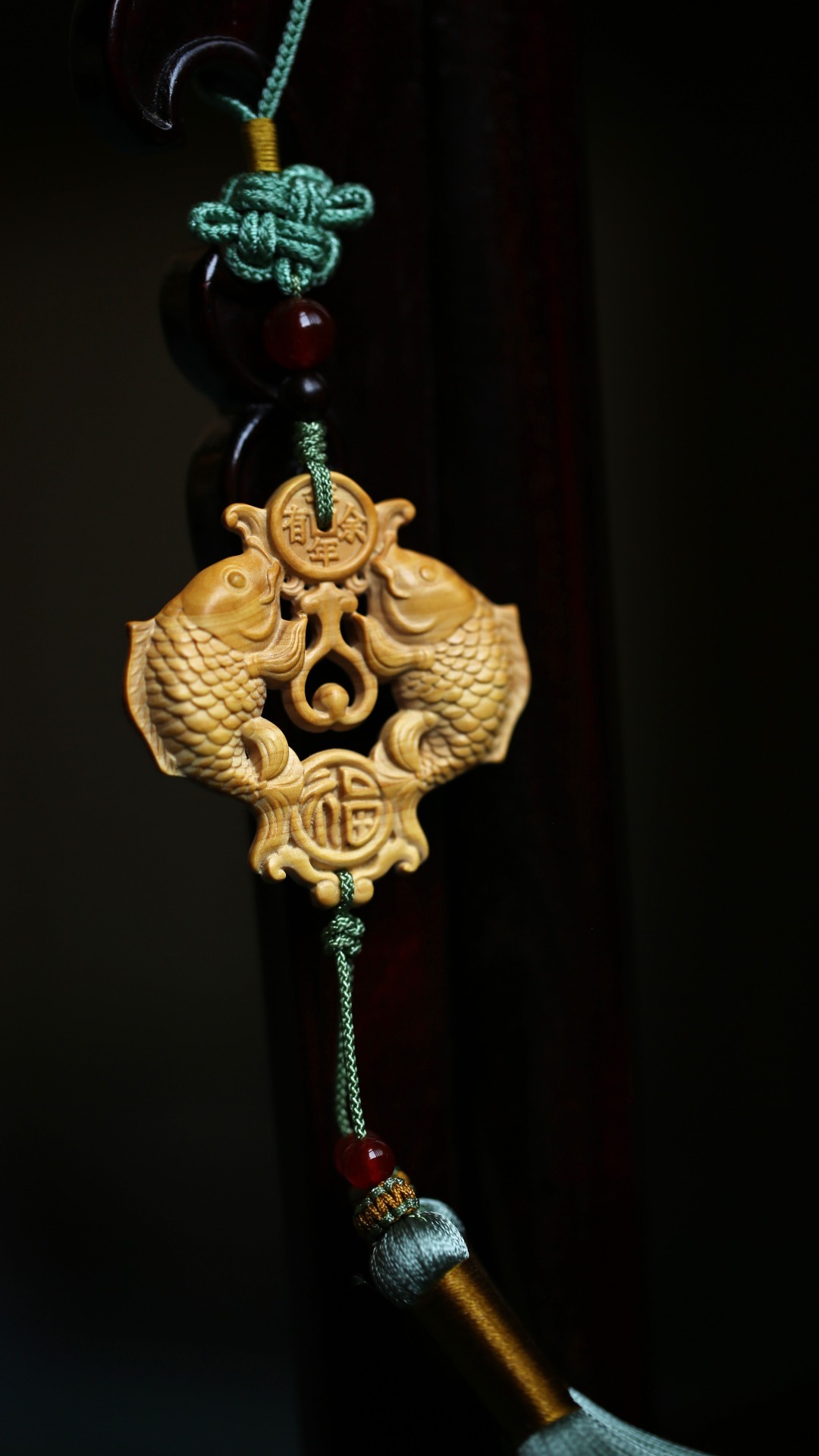 黄杨木【年年有余】挂件手工中国编绳,充满宫廷风,配上了流苏,可当包挂车挂等,寓“