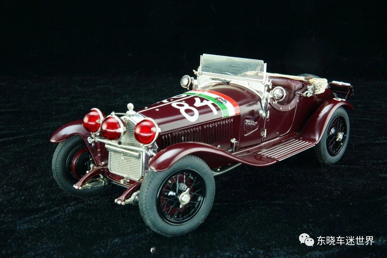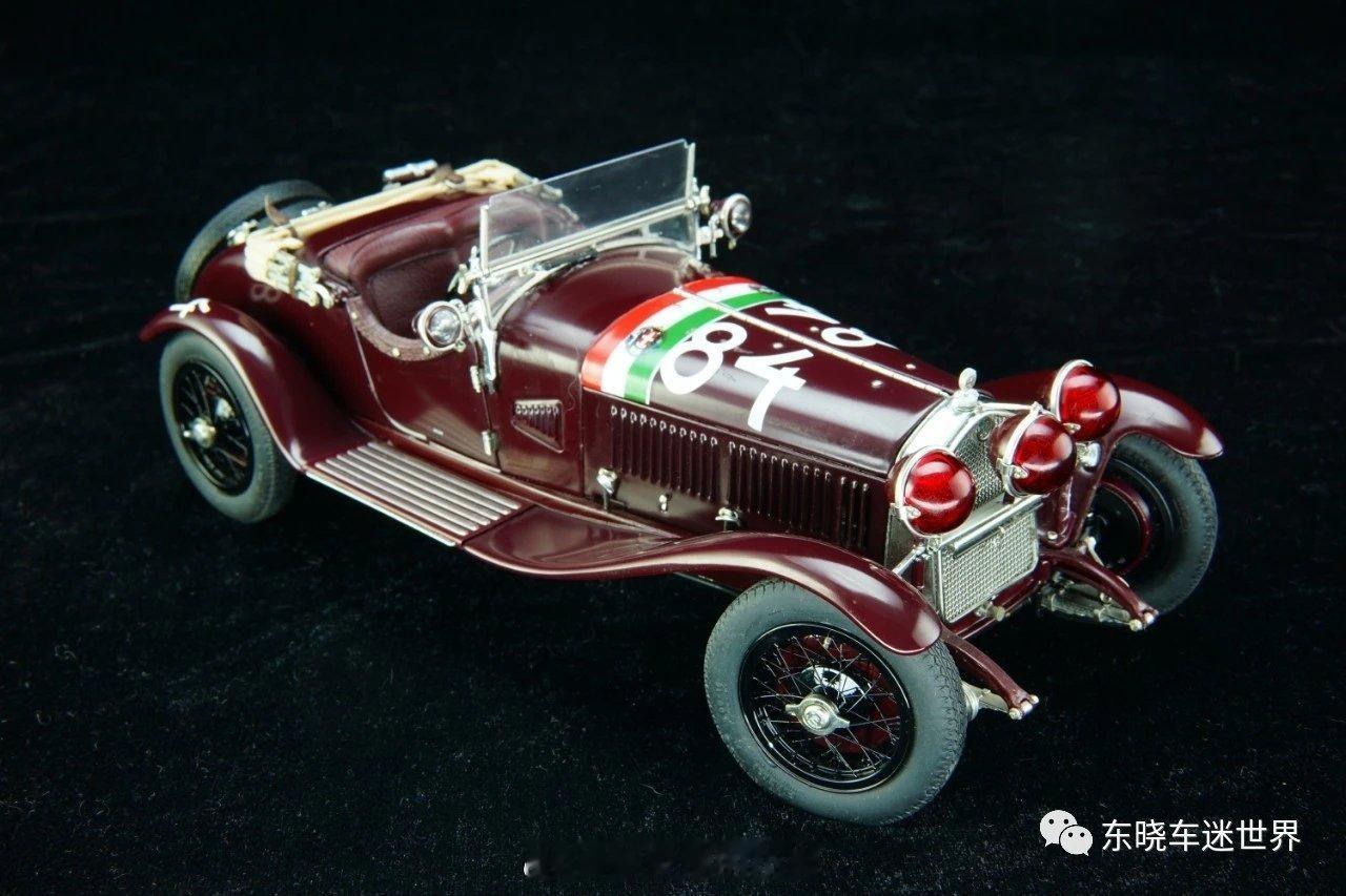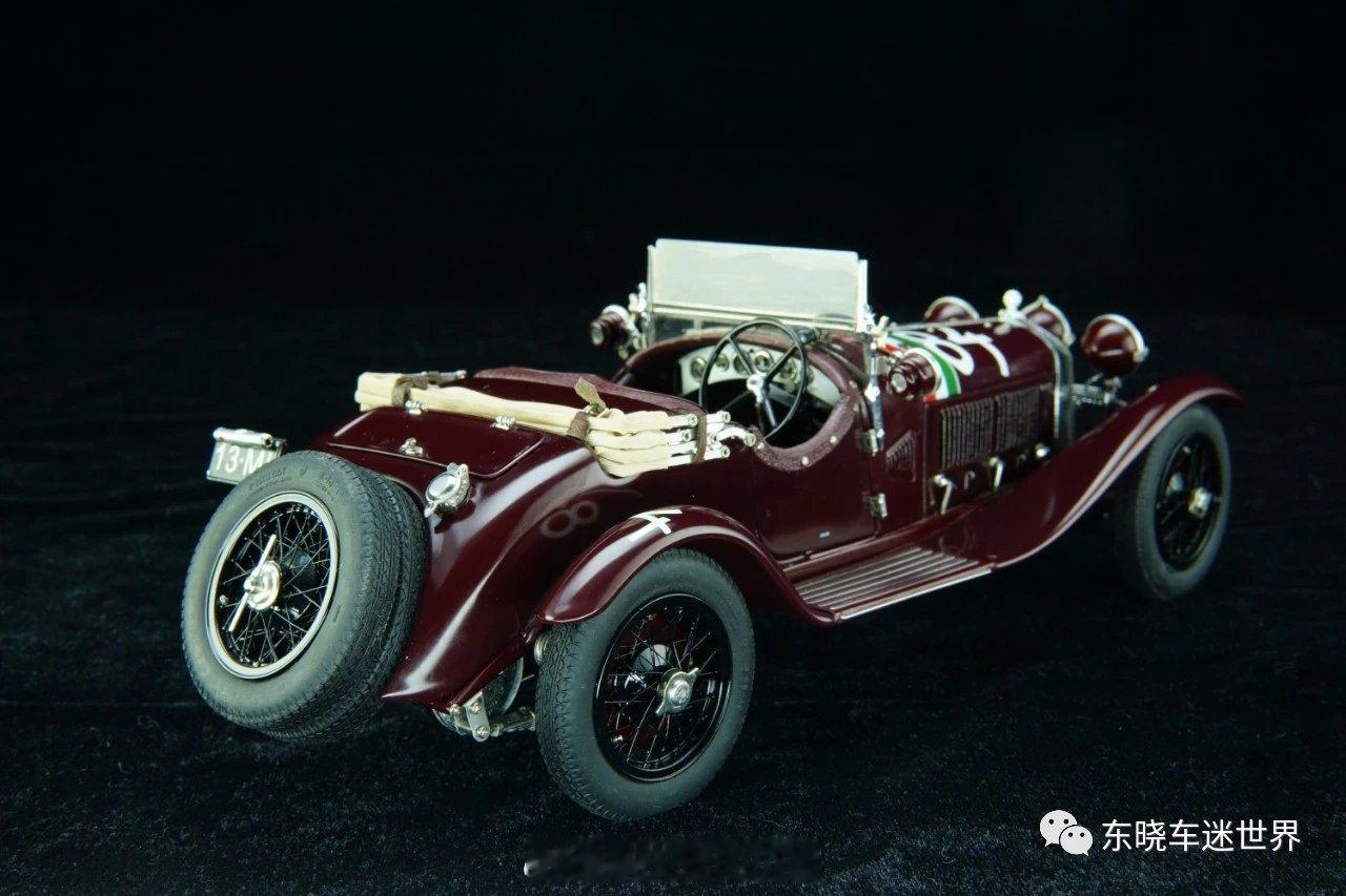 经典老车 1928阿尔法罗密欧6C型赛车1928年阿尔法·罗密欧6C型1500赛车,是意大利汽车设计哲学的凝练之作。作为阿尔法·罗密欧在1927年险些破产后的重要复兴车型,6C 1500以轻盈车身、强劲性能与诗意设计,成为赛道与收藏界的传奇。其6缸引擎赋予车辆迅猛加速与精准操控,使“阿尔法=高性能”的口碑在赛道上深入人心。该模型还原了经典赛车风貌:酒红色车身配意大利国旗条纹与84号车号,三圆红灯前脸、大波浪型挡泥板、开放式座舱与备胎外挂,尽显20世纪20年代赛车的机械美学与优雅气质。(图文来源于东晓车迷世界微信公众号)